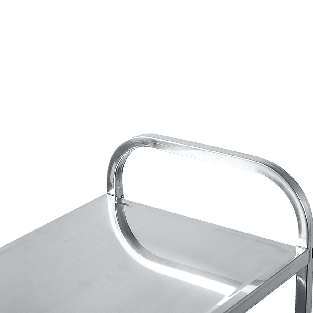 Its sturdy construction and locking wheels ensure against accidental bumps knocking food and dishes to the floor. Two handles provide extra control. With three tiers of shelves, you can feed a crowd or clean up after them without time-wasting return trips, saving you or your waitstaff valuable time. Don't waste a minute more on extra trips to the kitchen. Order your kitchen trolley today!