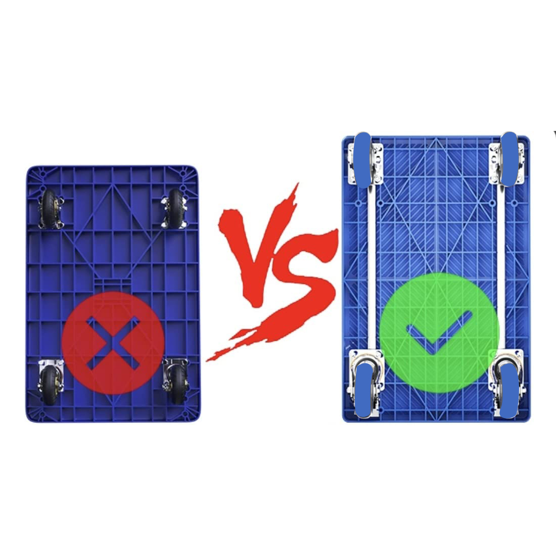 The platform dolly cart’s clever foldable design allows for easy storage when not in use. When folded down to approximately 60cm x 90cm x 15cm, it takes up minimal space, making it ideal for smaller storage areas or transporting in vehicles.