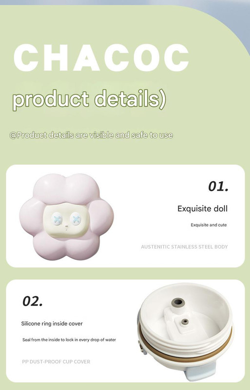 This tumbler comes with a convenient handle for easy carrying and a dust-proof lid to keep your drink clean. The adorable cloud-shaped accessory adds a playful touch, while the silicone non-slip base ensures stability on any surface. Made with PP material for the lid, this tumbler is lightweight, durable, and designed for everyday use, combining practicality with a charming aesthetic.
