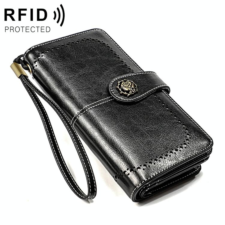 3556 Large Capacity Long Multi-function Anti-magnetic Rfid Wallet Clutch for Women with Card Slots – Black