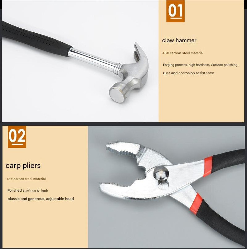 This 39-Piece Home Tool Kit is the perfect starter set for DIY enthusiasts or new homeowners. Packed with essential tools made of durable carbon steel and featuring a stylish red and black design, this kit has everything you need for basic home repairs and maintenance.