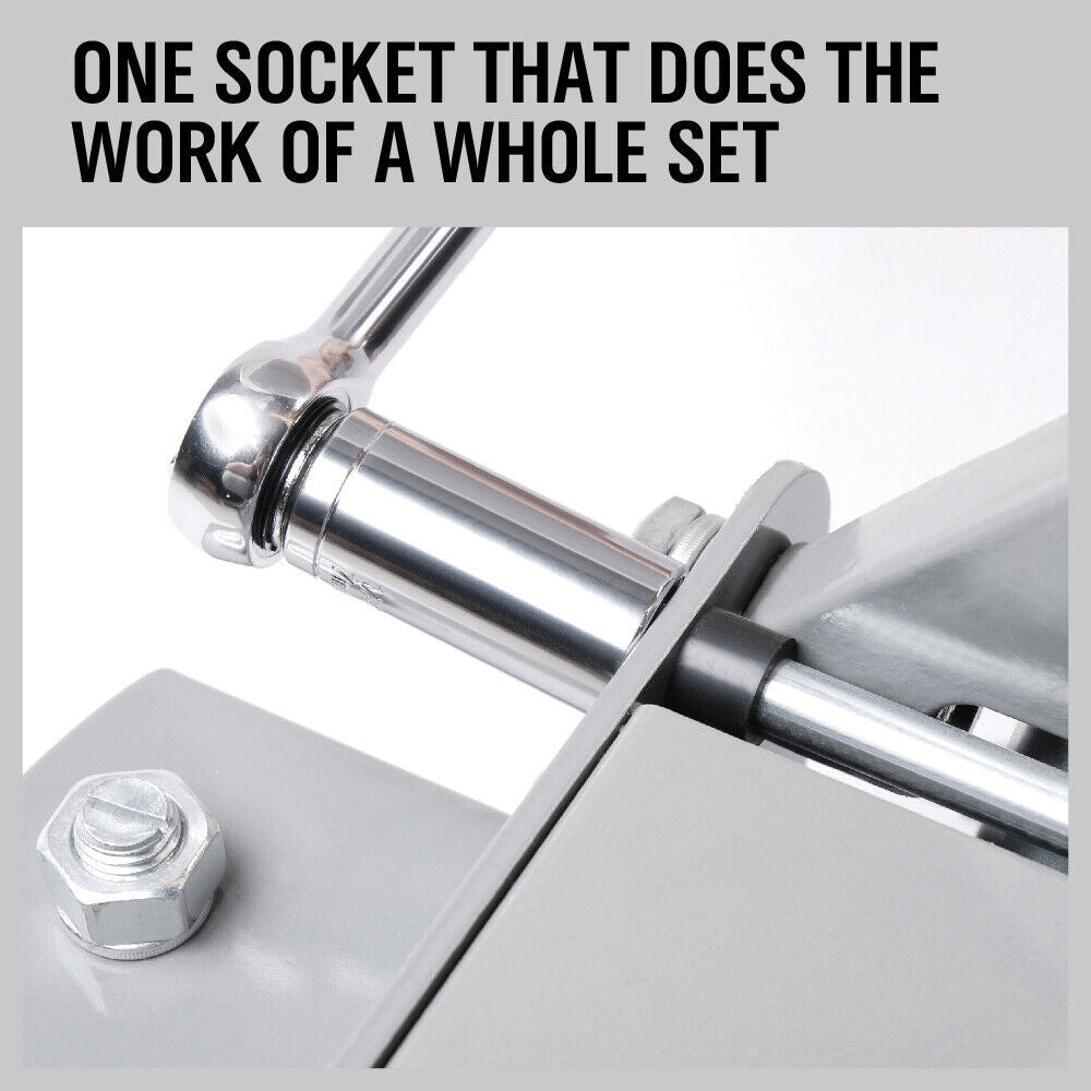 The revolutionary socket design automatically adjusts to fit any nut or bolt from 1/4″ to 3/4″ , 7-19 mm! Works great on metric, standard, wing nuts, broken nuts, stripped nuts, eye bolts, square nuts, hexes and more! Save Time! Save Work!