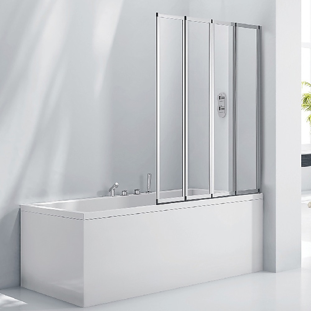 Our four-fold chrome bath shower door panel will brighten your existing bathroom or be a welcome improvement as a part of your bathroom renovation. This folding shower screen is a plus for both the homeowner and the home developer. The panel's frame is constructed of the highest quality polished chrome and the AS/NZS 2208 approved glass ensures safety and reliability.