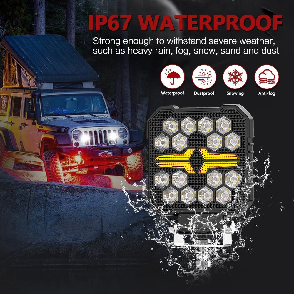 4 Inch Square Mixed Luminous Fishbone Angel Eye Car Work Light