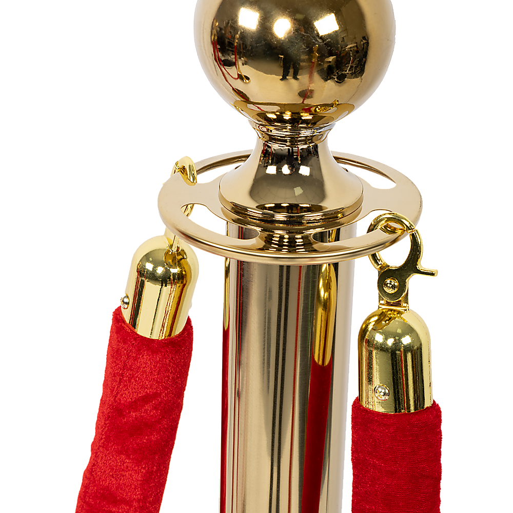 Constructed with durability in mind, the gold crowd control stanchions are meticulously crafted from 201 stainless steel posts and zinc alloy balls, ensuring resilience and resistance to high temperatures.