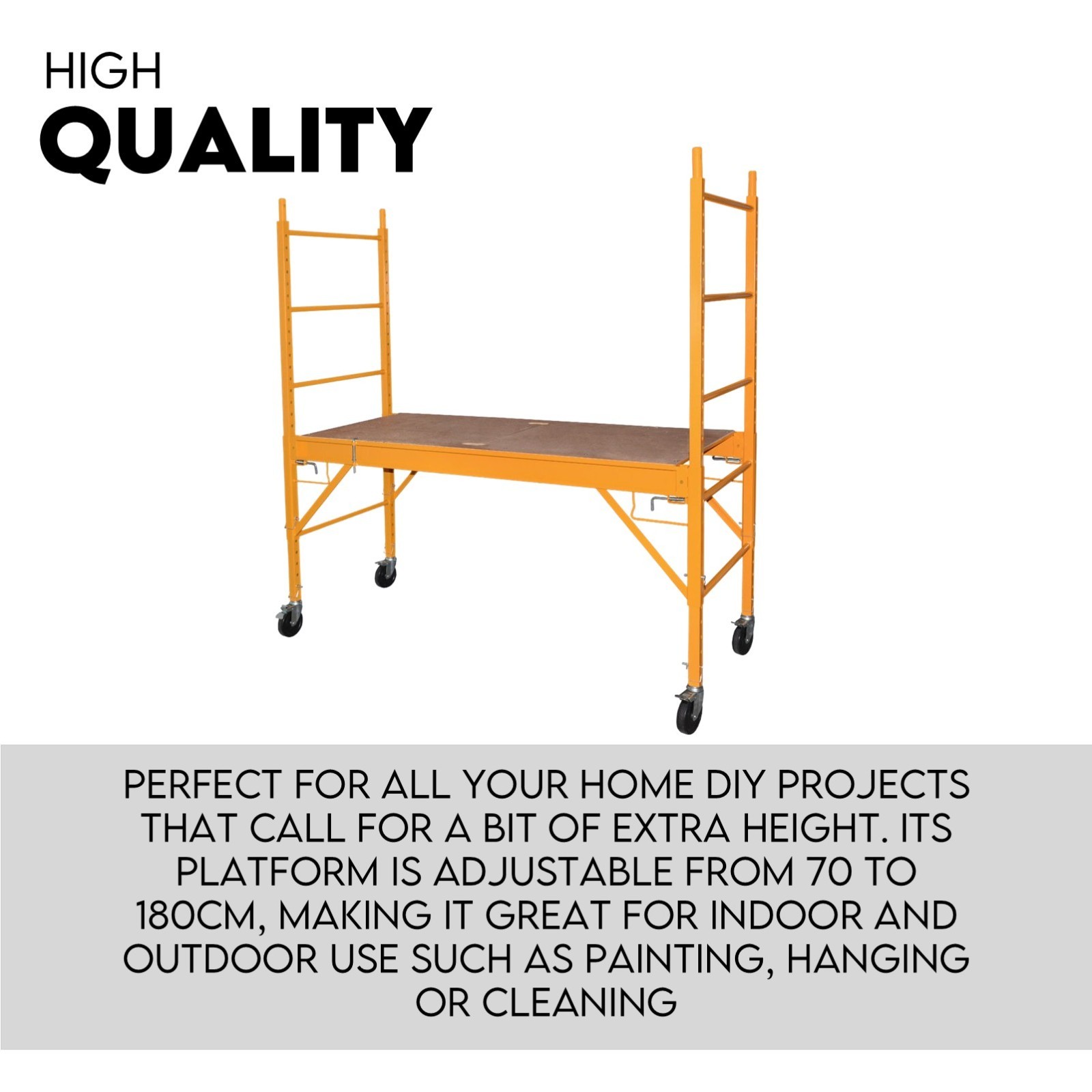 This 1800mm Multipurpose Scaffolding lets you quickly access high spaces for painting and renovation. You can also use it for adjusting your ceiling fixtures at home or work. Its locking swivel caster design creates a portable design with sturdy stability.