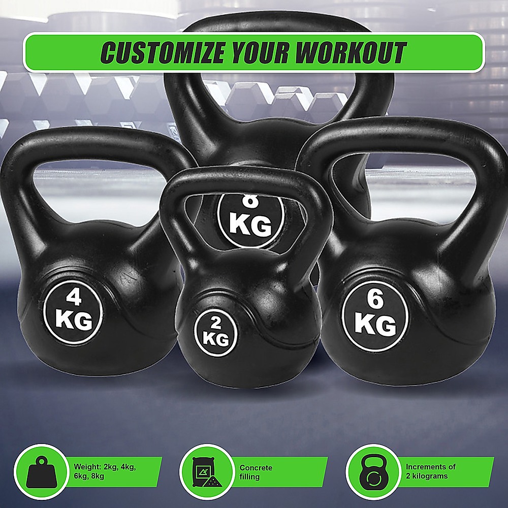 • Four Kettlebell weights (2kg, 4kg, 6kg, 8kg)