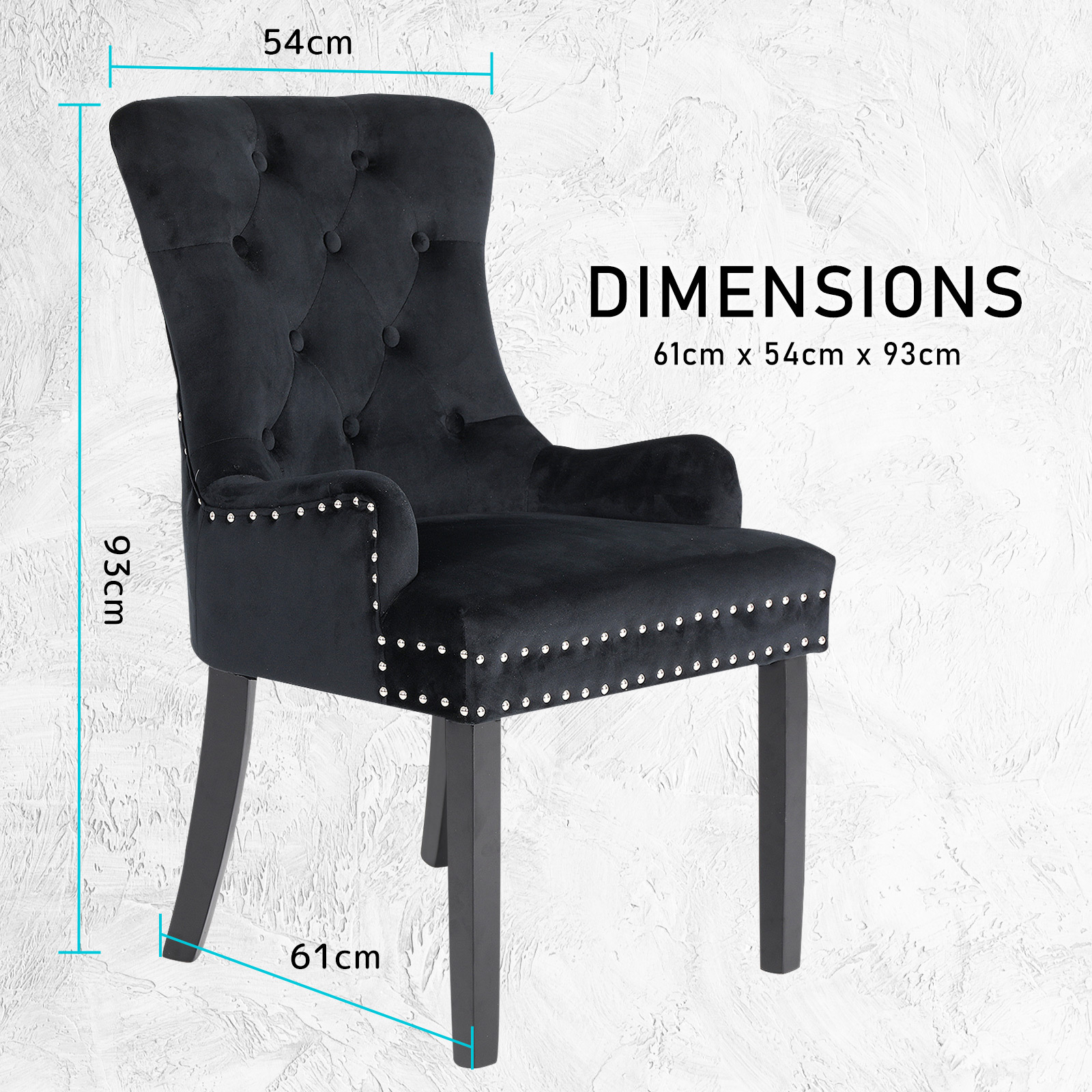 La Bella 4 Set French Provincial Dining Chair Ring Studded Lisse Velvet Rubberwood – Black