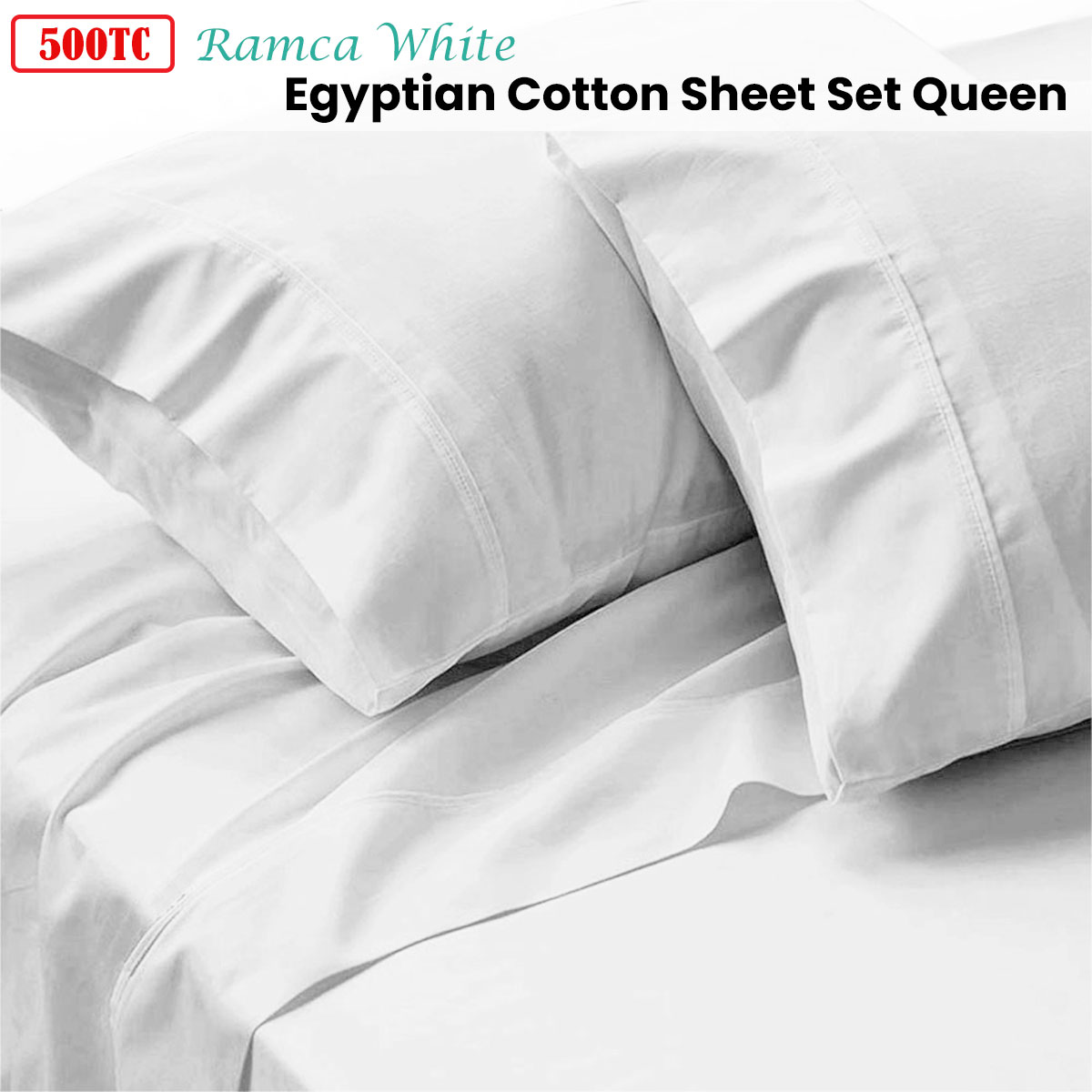 500TC Ramca White Egyptian Cotton Sheet Set Queen