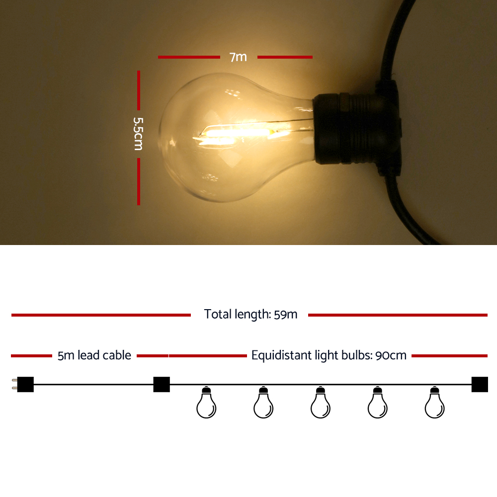 59m LED Festoon String Lights Outdoor Christmas Decorations Wedding Garden Party