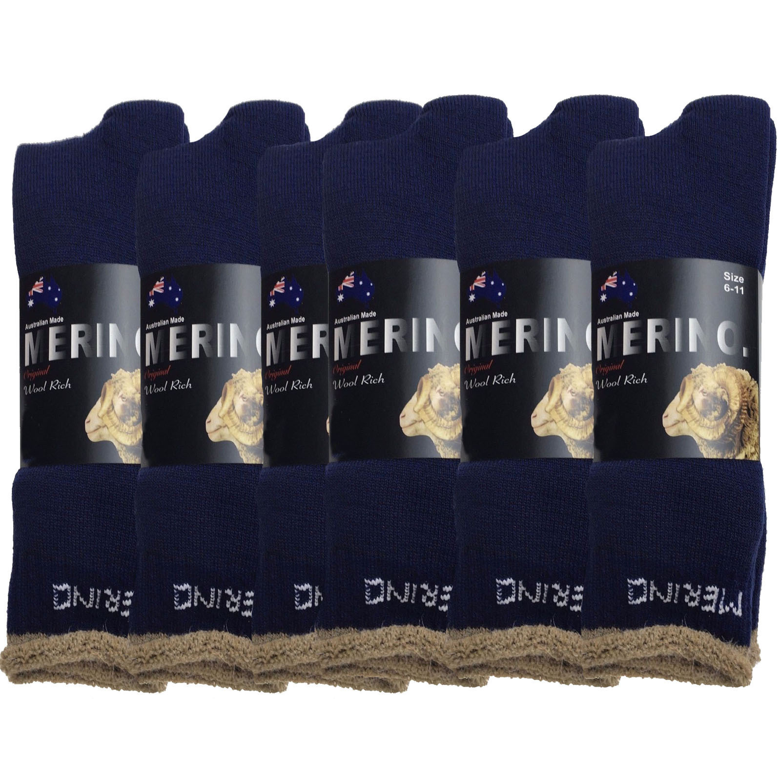 6 Pairs MERINO WOOL SOCKS Mens Heavy Duty Premium Thick Work Socks Cushion BULK – Navy Blue – 6-11