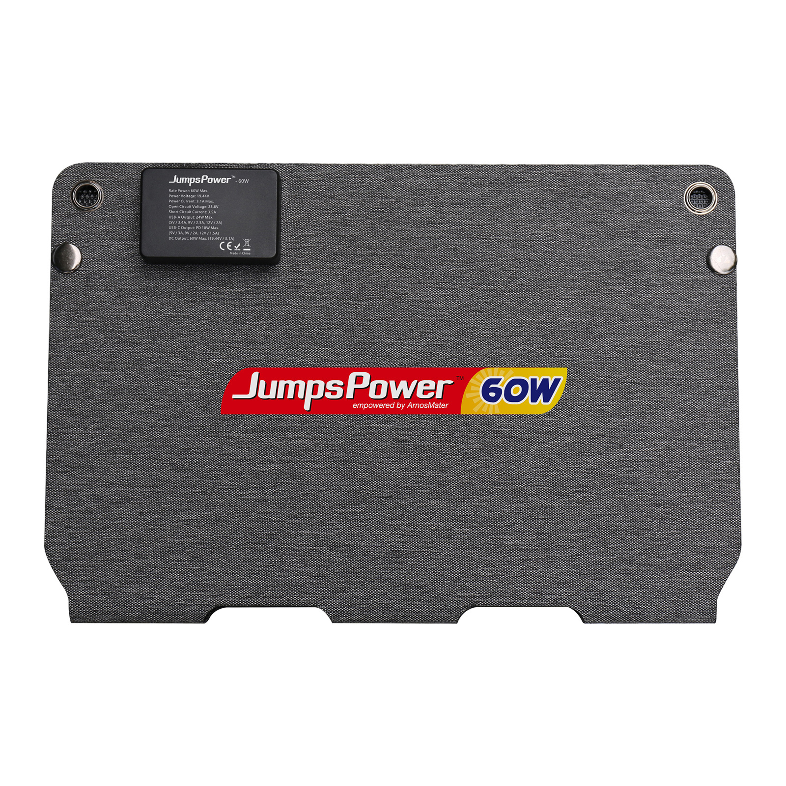 The JumpsPower 60W Portable Solar Panel is a cutting-edge solution for all your on-the-go energy needs. Utilizing high-efficiency monocrystalline silicon cells and coated with durable ETFE film, it delivers a superior performance by harnessing solar power more effectively. Designed for longevity and higher conversion efficiency, this panel is ideal for outdoor enthusiasts and professionals alike.