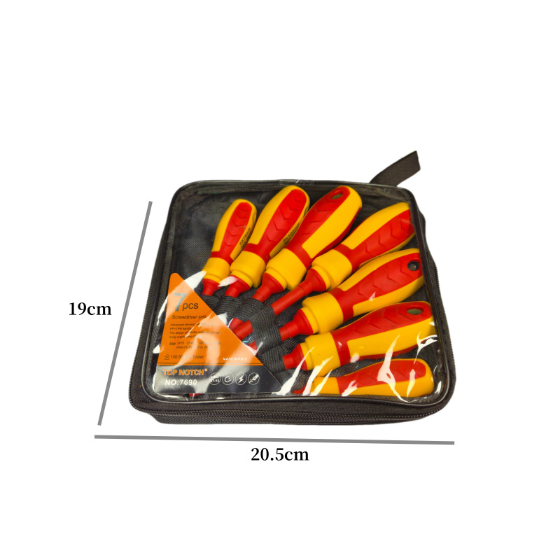 Our 7-Piece Insulated Screwdriver Set is designed for electricians and home repair professionals who need a safe and reliable set of tools for working with electricity. Made from durable CR-V steel and insulated to withstand up to 500V, this set ensures your safety while performing electrical work.