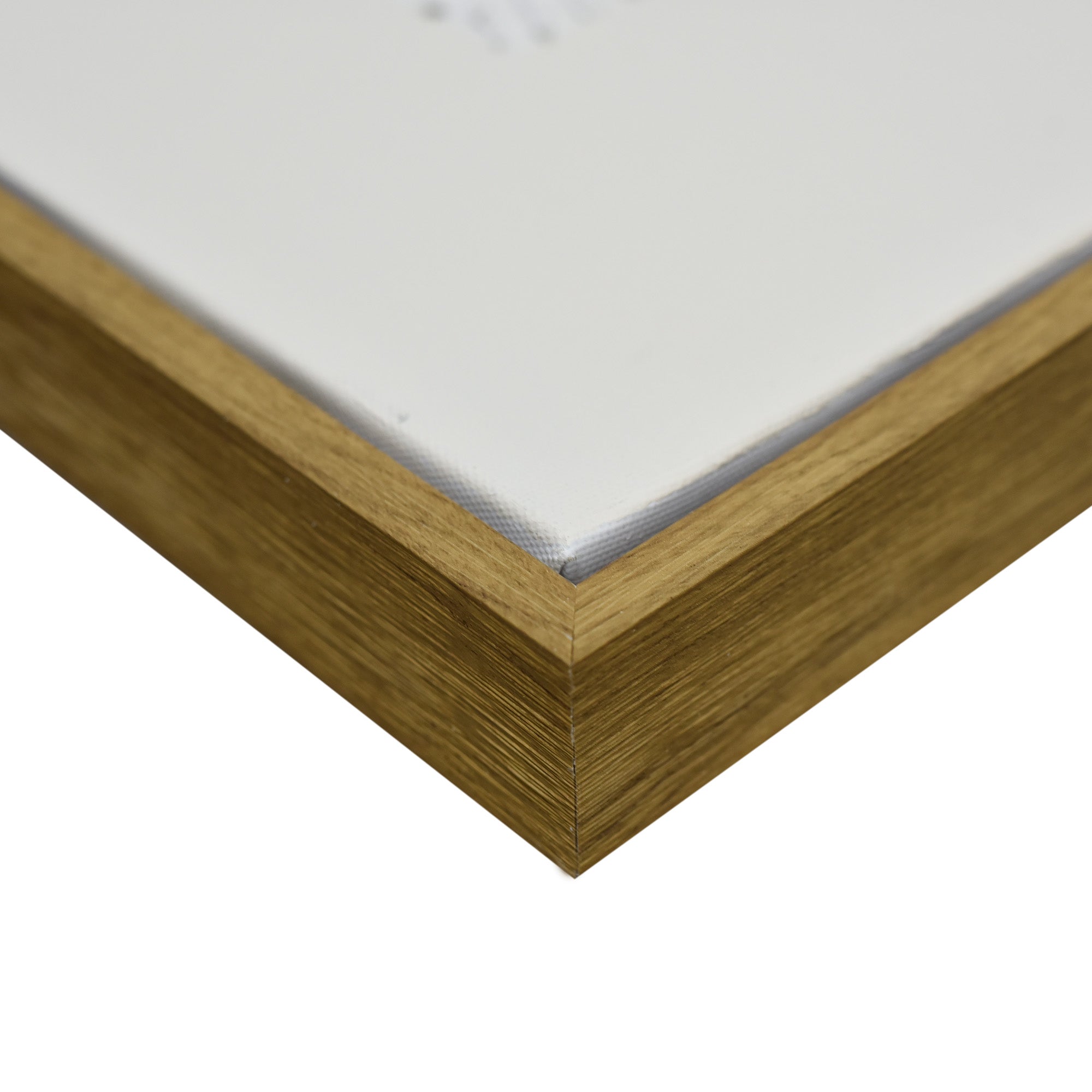 Stretched and gallery wrapped around a wooden stretcher and finished with a floating frame. There is a gap between the frame and print, which creates the floating effect and literally makes the canvas print stand out even more.
