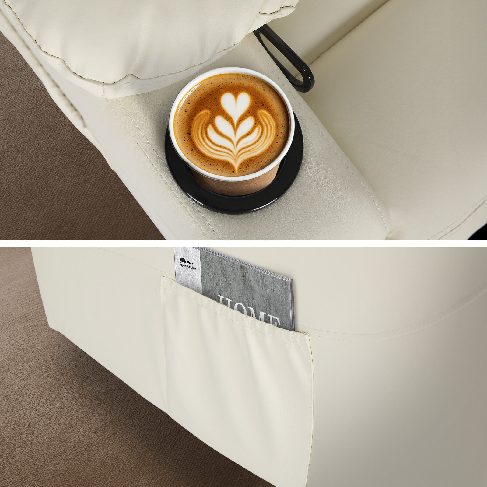 Two built-in cup holders keep your drinks and snacks close so you never have to reach far. Everything you need to relax is right at your fingertips.