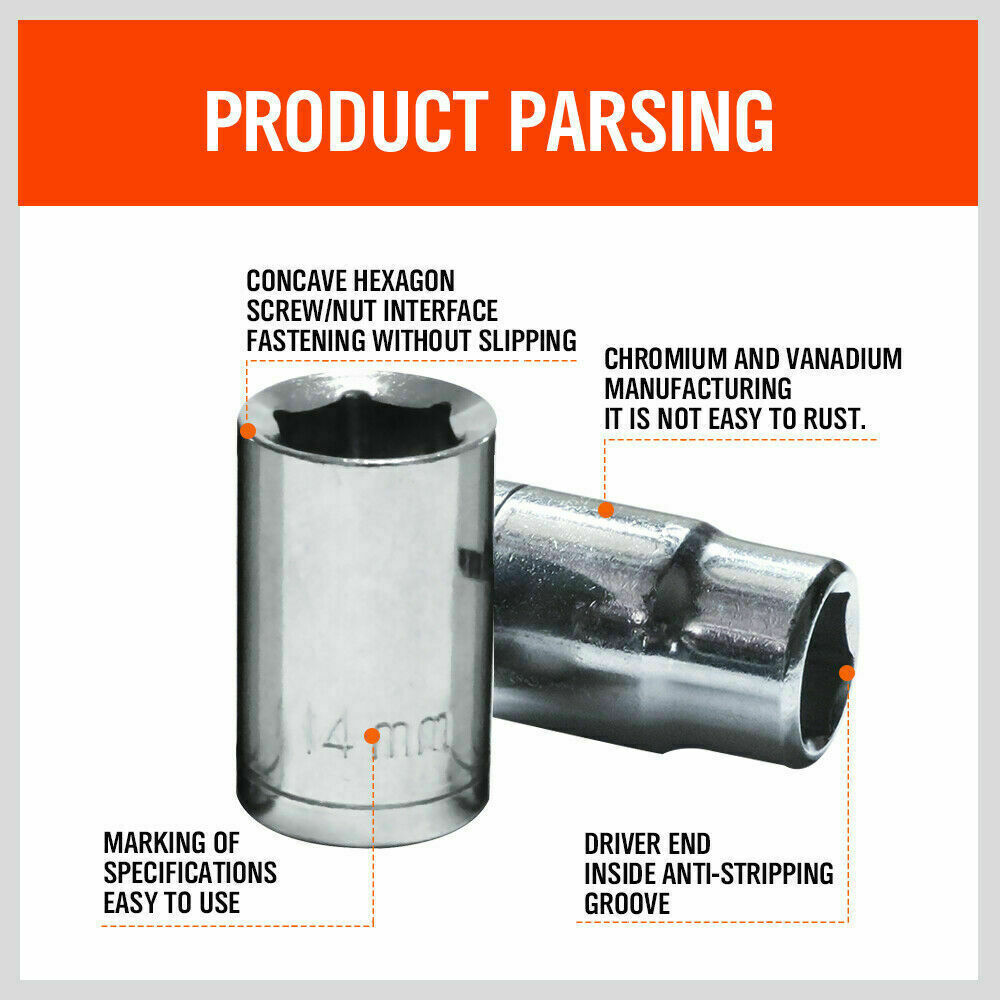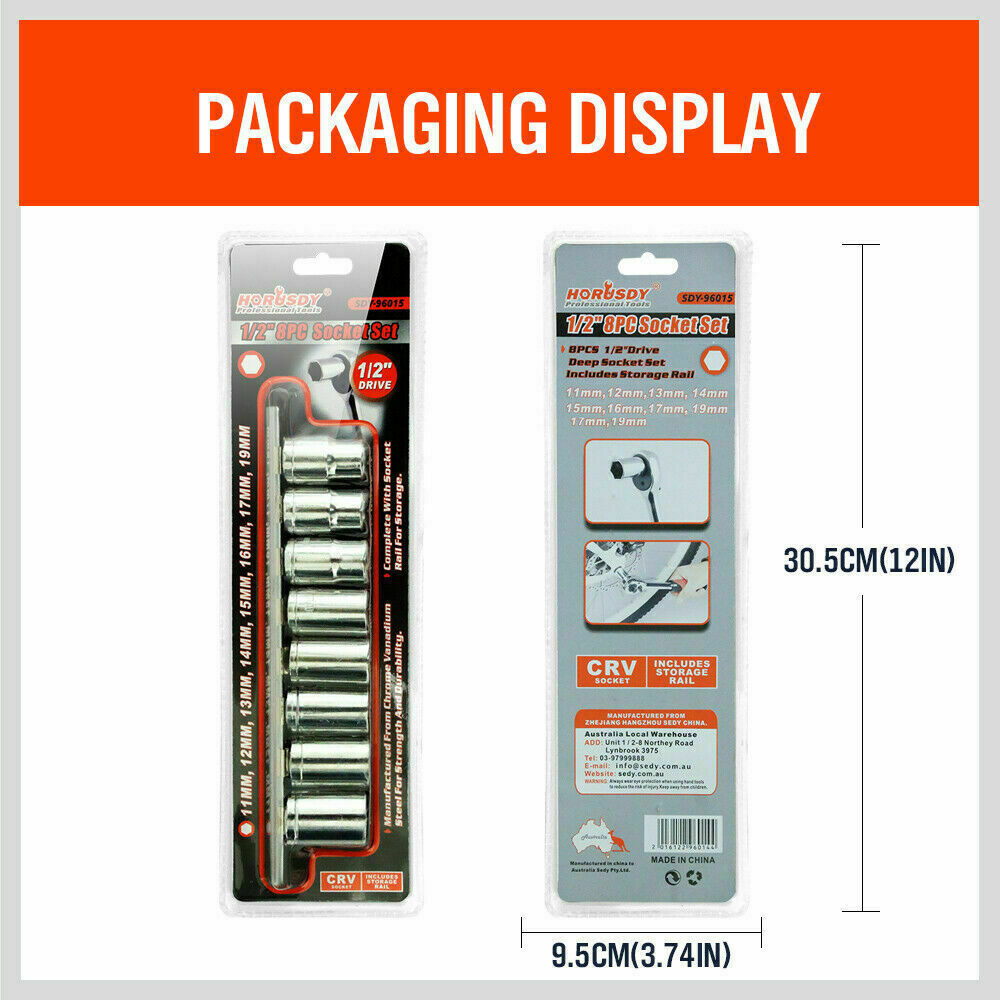 Set Includes(1/2″ Drive): 11, 12, 13, 14, 15, 16, 17, 19 mm