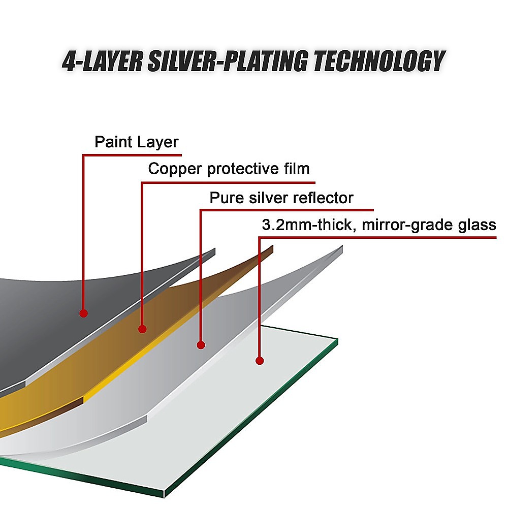 • Material: MDF, silver plating, high quality powder coated finish and mirror-grade glass