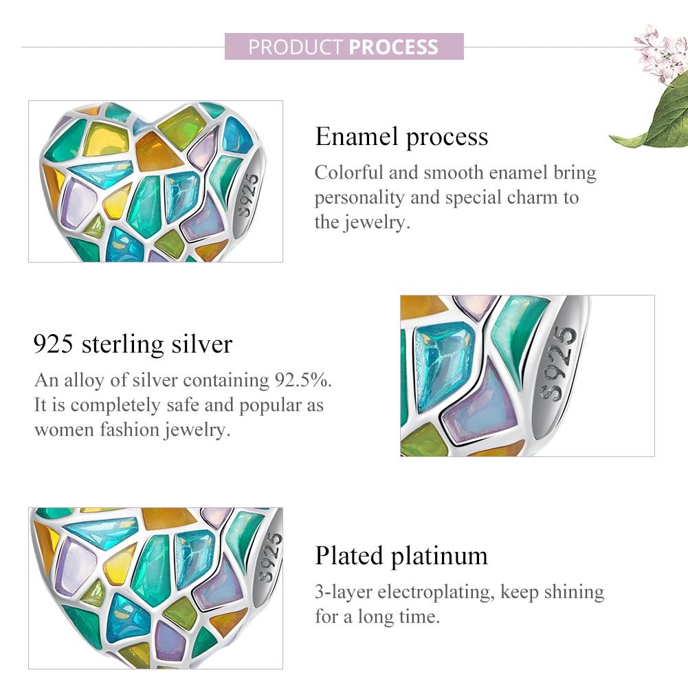 • 1 x 925 Sterling Silver Colorful Heart Beads For Diy Bracelets Necklaces