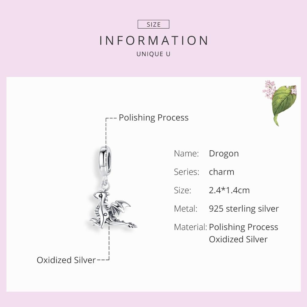 925 Sterling Silver Drogon Dinosaur Charm For Diy Bracelets
