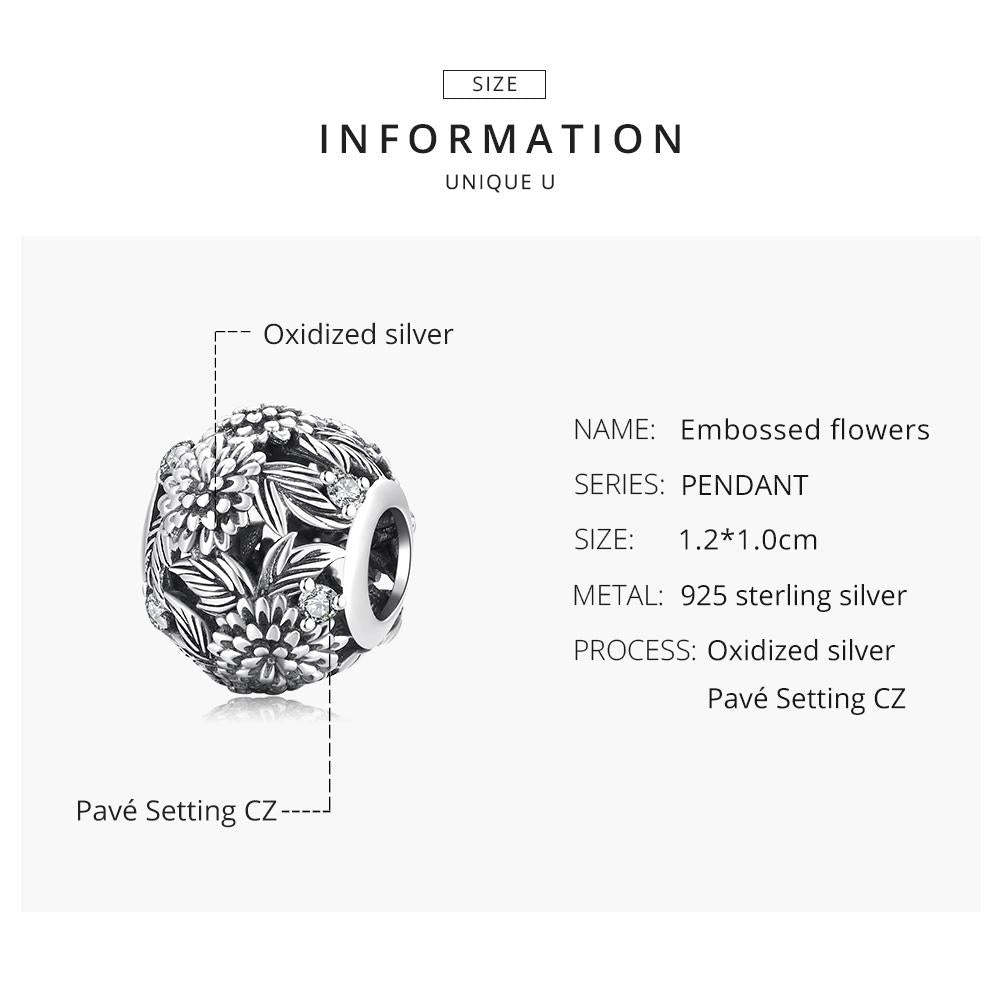 • 1 x 925 Sterling Silver Embossed Flower Beads For Diy Bracelets Necklaces