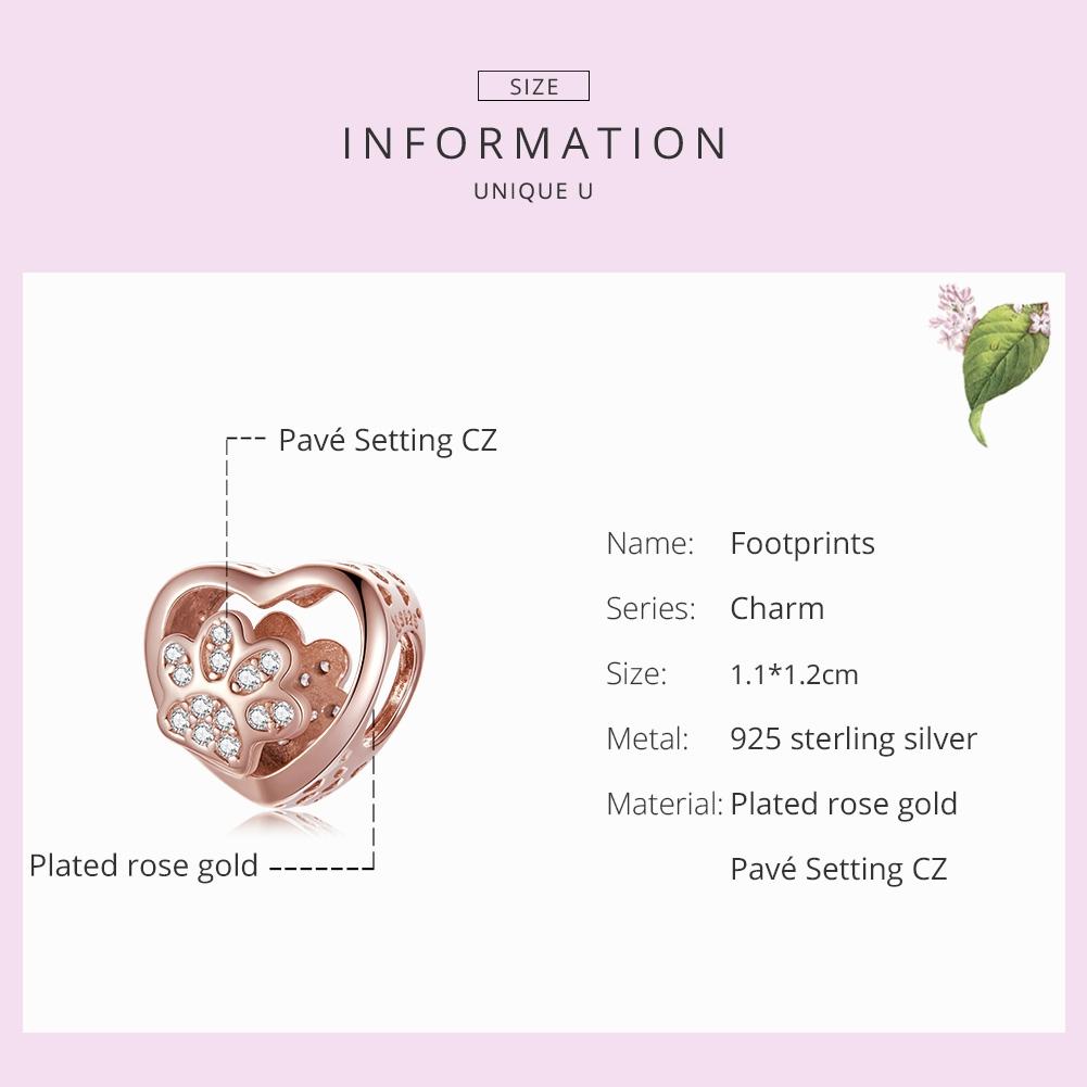 925 Sterling Silver Pet Paw Print Beaded Bracelet – Rose Gold