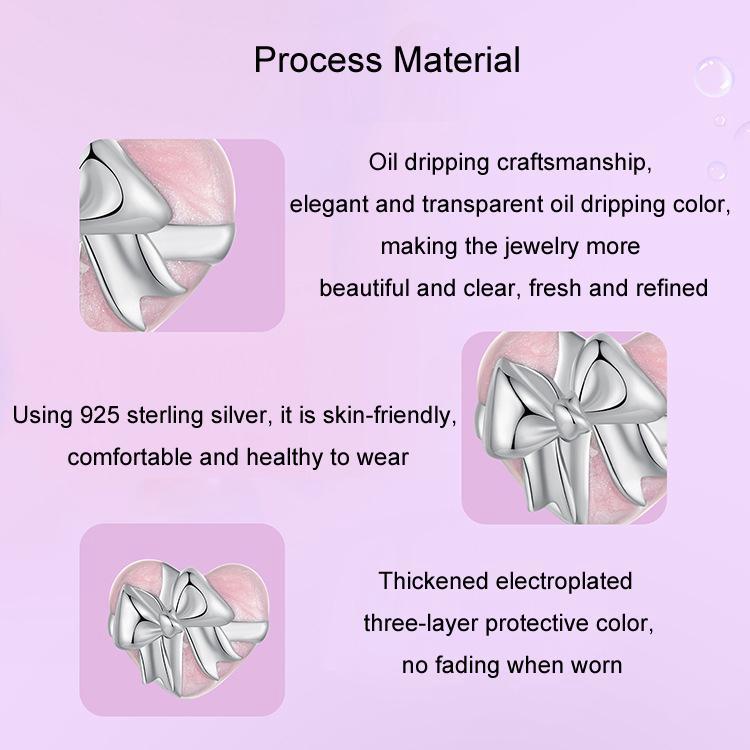 925 Sterling Silver Platinum Heart Bow Beads Gift Box
