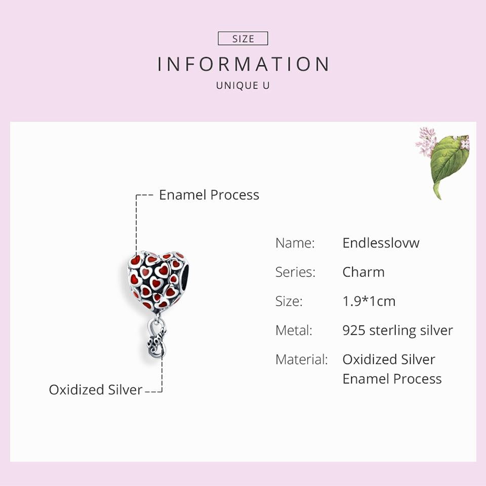 • 1 x 925 Sterling Silver Red Heart Beads For Diy Bracelets Necklaces