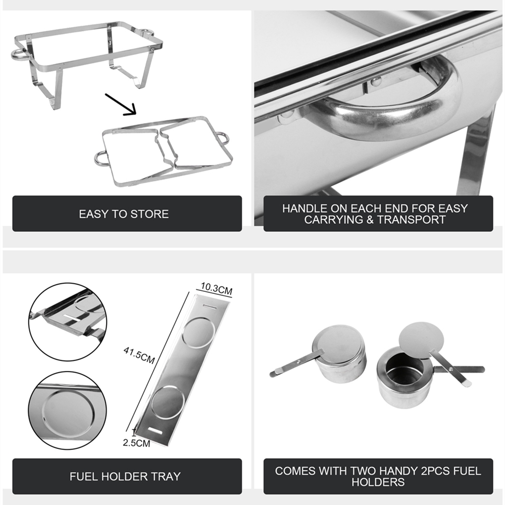 9L Chafing Dish Set Buffet Pan Bain Marie Bow Stainless Steel Food Warmer(2*4.5L)
