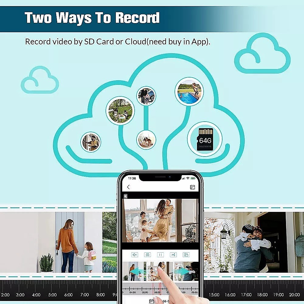 - Two storage methods, video screen playback at will, support card storage and cloud recording storage (not included)