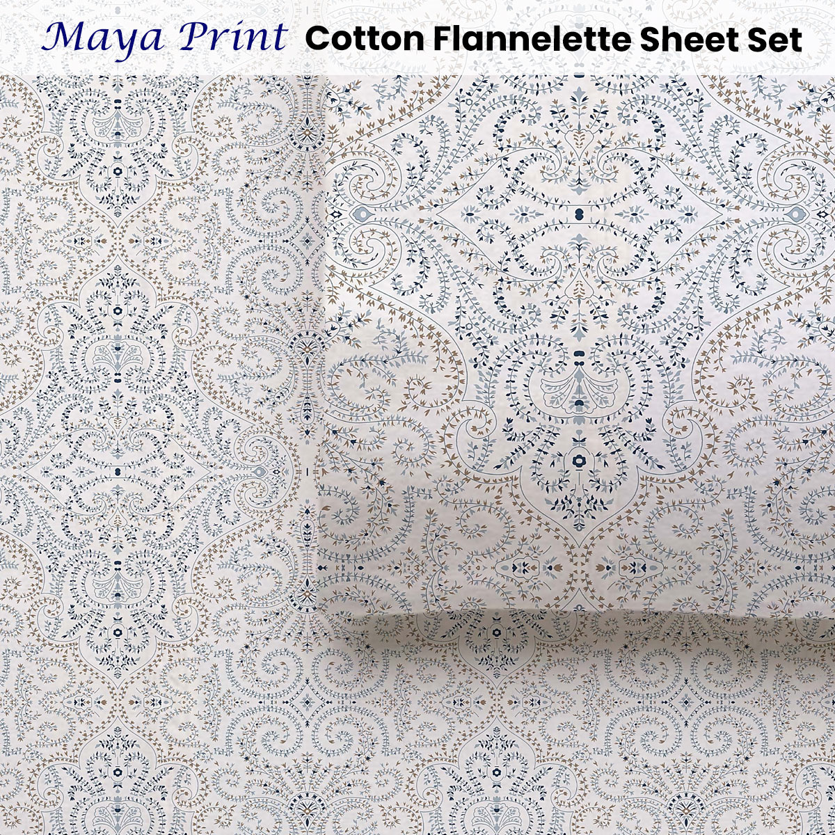 Accessorize Cotton Flannelette Sheet Set 40cm Wall Maya Print Queen