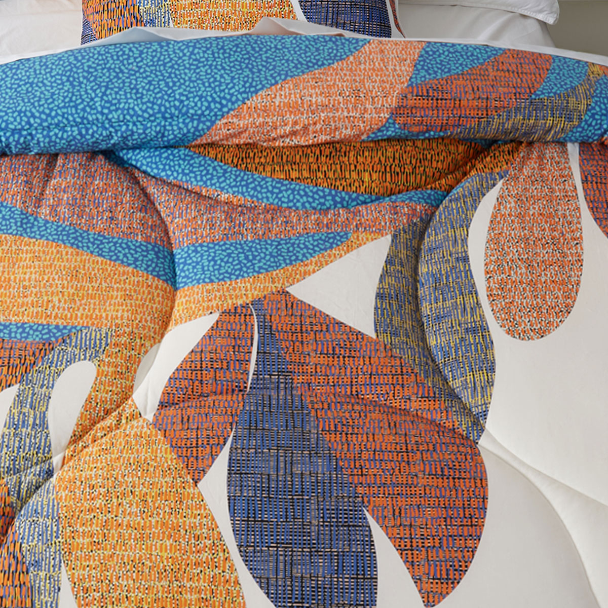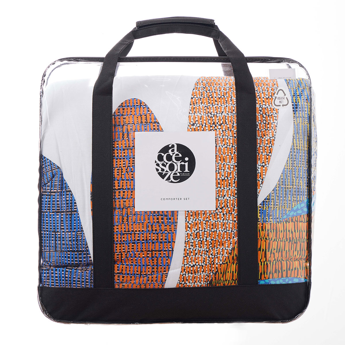 The Sorrel White Foliage 3 Piece Comforter Set by Accessorize brings vibrant energy to your bedroom. Featuring an eye-catching foliage design with bold autumn-inspired hues of white, brown, black, blue, red, and purple tones, this set makes a striking statement. The comforter is made from soft, breathable fabric, ensuring a cosy and restful sleep. Complete with matching pillowcases, this set effortlessly combines contemporary style with comfort, making it a perfect addition to any modern home.