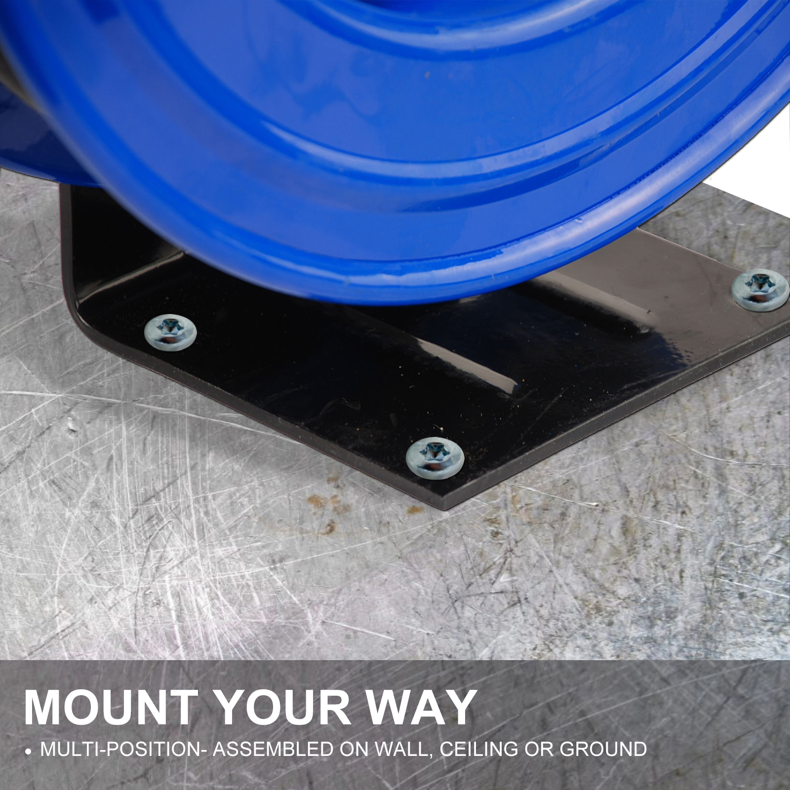 This Dynamic Power Rewind Hose Reel is a new Concept in Hose Care. It’s Neat and Tidy and can be Mounted on the Ground, Wall, Overhead or on your Vehicle. This Air Hose Features Heavy-Duty Steel Case, Positive Rewind Action, Auto-Lock and Full Flow Swivel. It also features as 300PSI Air Hose which can be used for most of the Air Tools. This is the Perfect Addition to any Garage or Workshop that needs to keep their Air Hose Clean and Tidy.