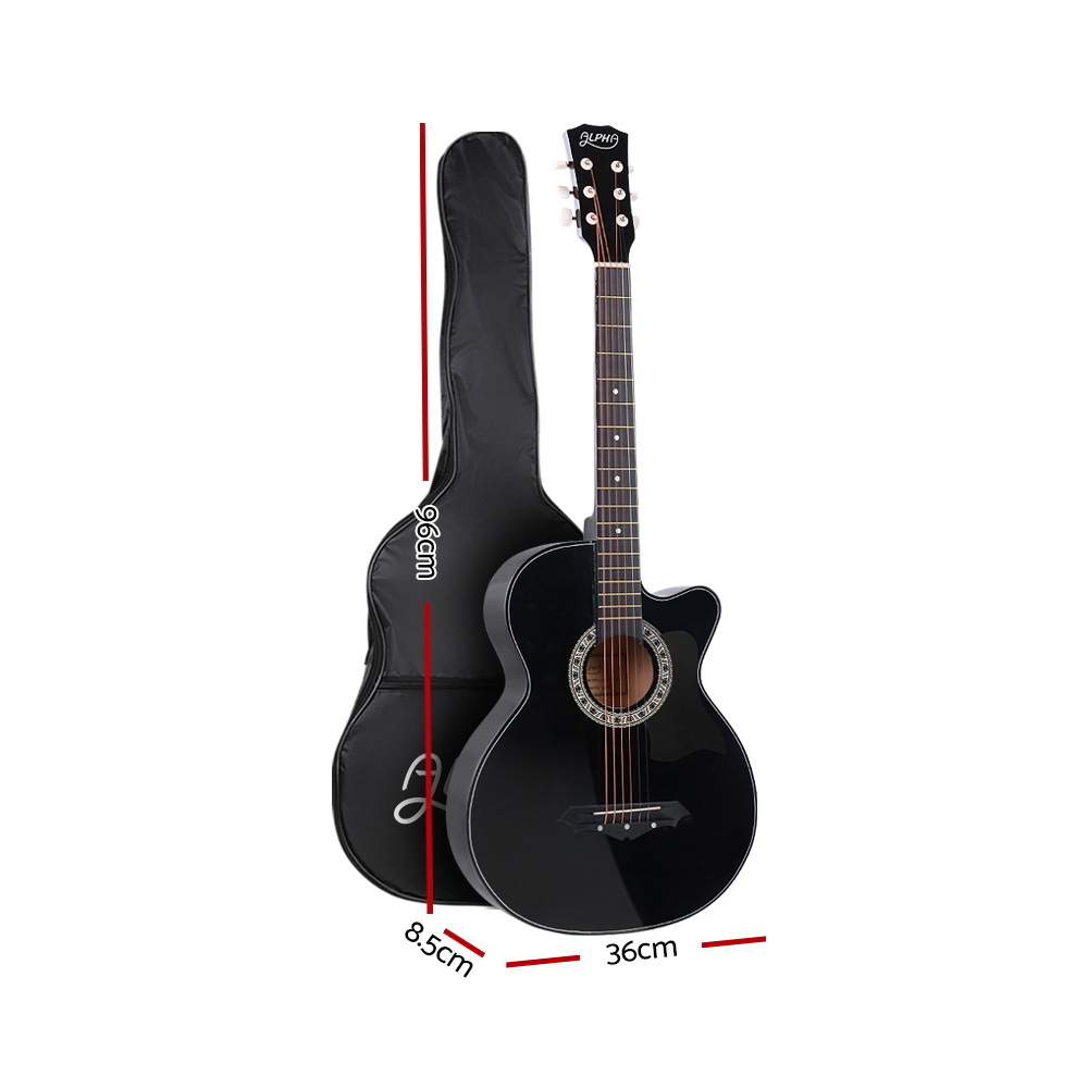 Alpha 38 Inch Acoustic Guitar Wooden Body Steel String Full Size Cutaway Black