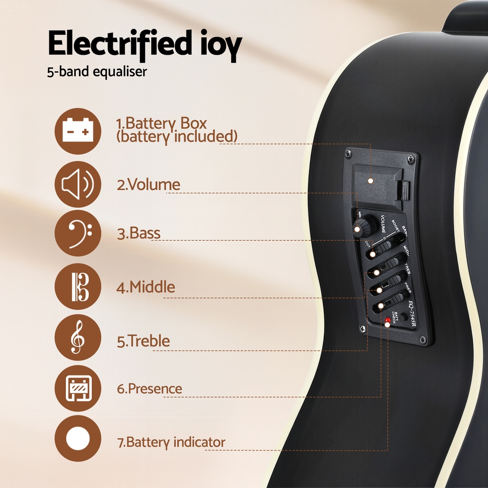 Alpha 43″ Acoustic Bass Guitar Black 4-Band EQ