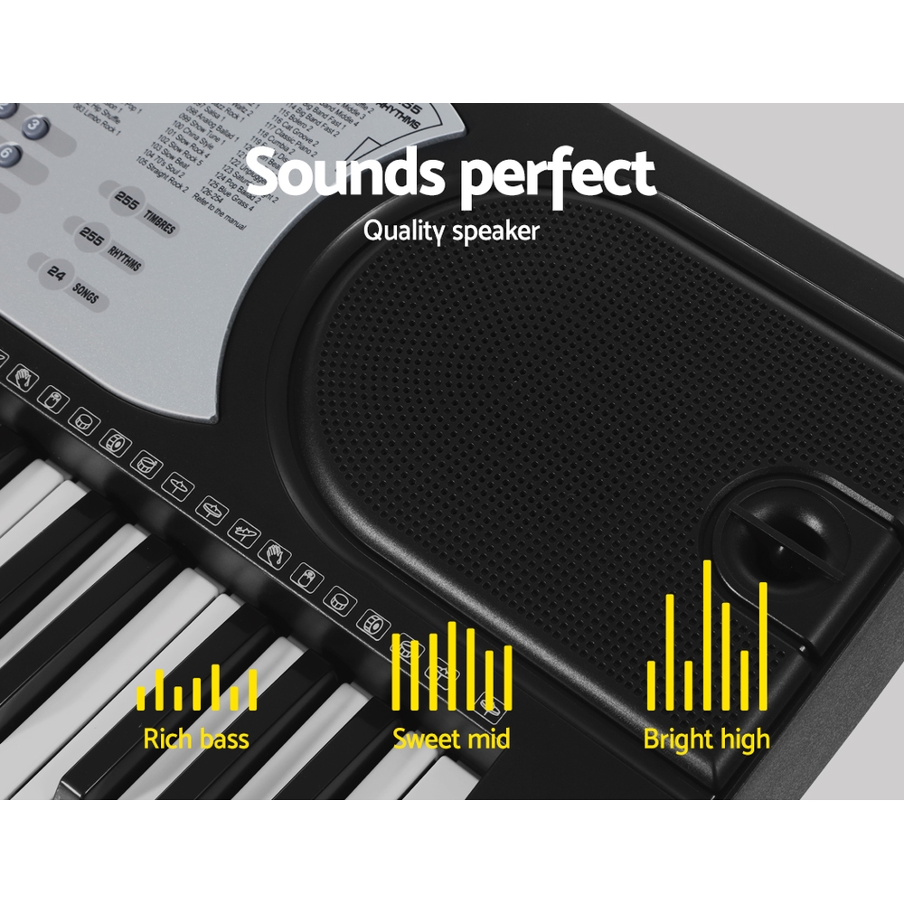 With 61 keys, the Alpha Portable Keyboard EK-60 enables you to discover a whole new world of music with exceptional built-in features: 255 rhythms, 255 timbres, tempo control, volume control, 24 demo songs, multiple chord options, various effects controls, 61 keyboard percussion select and many more. You can programme the keyboard to assist with your compositions and the intelligent one-key and guide function helps you to learn to play better with minimum fuss. Not least, with various inputs for microphone and headphones as well as speaker outputs, the keyboard also allows you to play and sing for all to hear or for silent practice. An adjustable keyboard stand and music sheet holder are also included as standard.