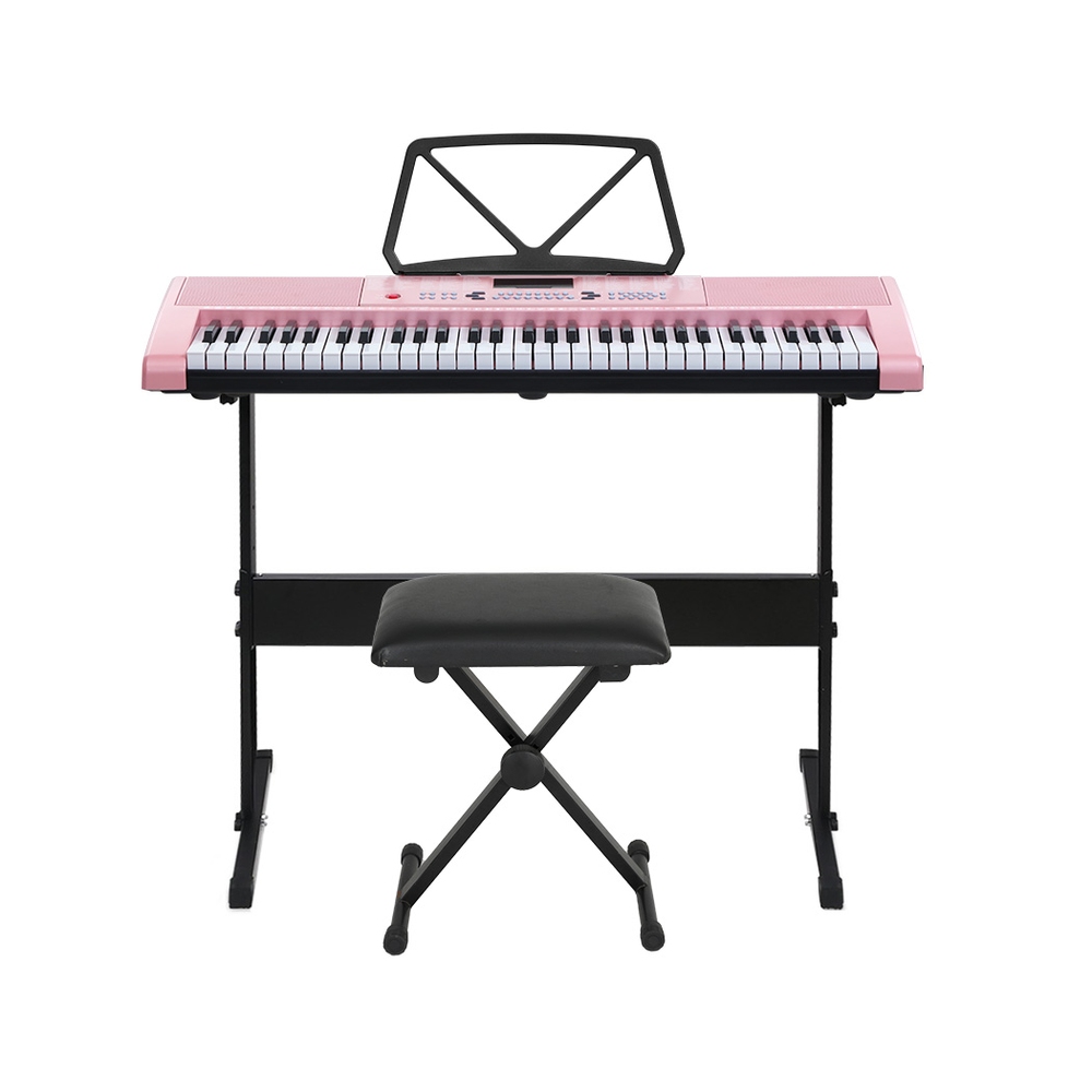 Alpha 61 Keys Electronic Piano Keyboard Digital Electric w/ Stand Stool Pink