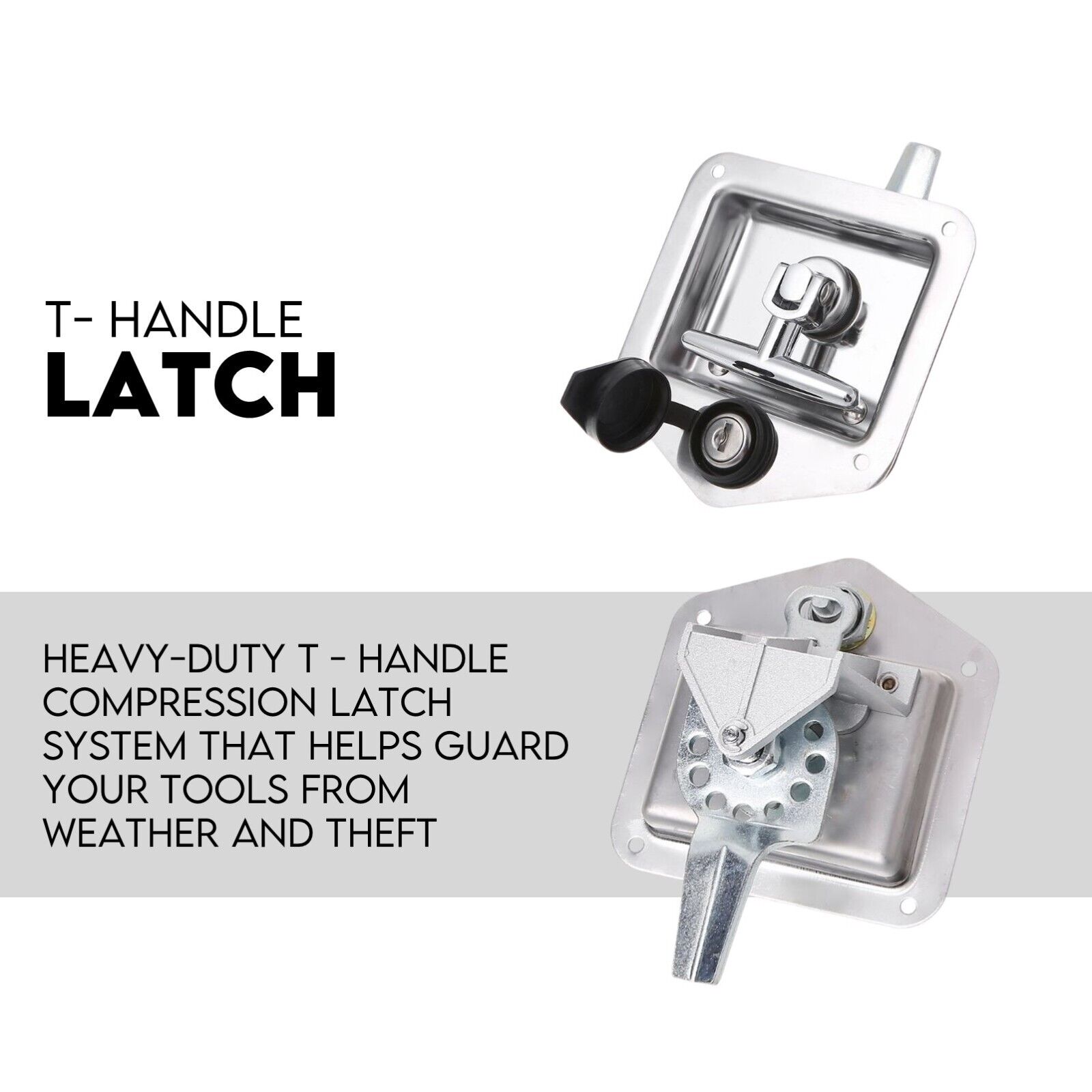 Most importantly, the tool box is equipped with heavy-duty T – handle compression latch system that helps guard your tools from weather and theft.
