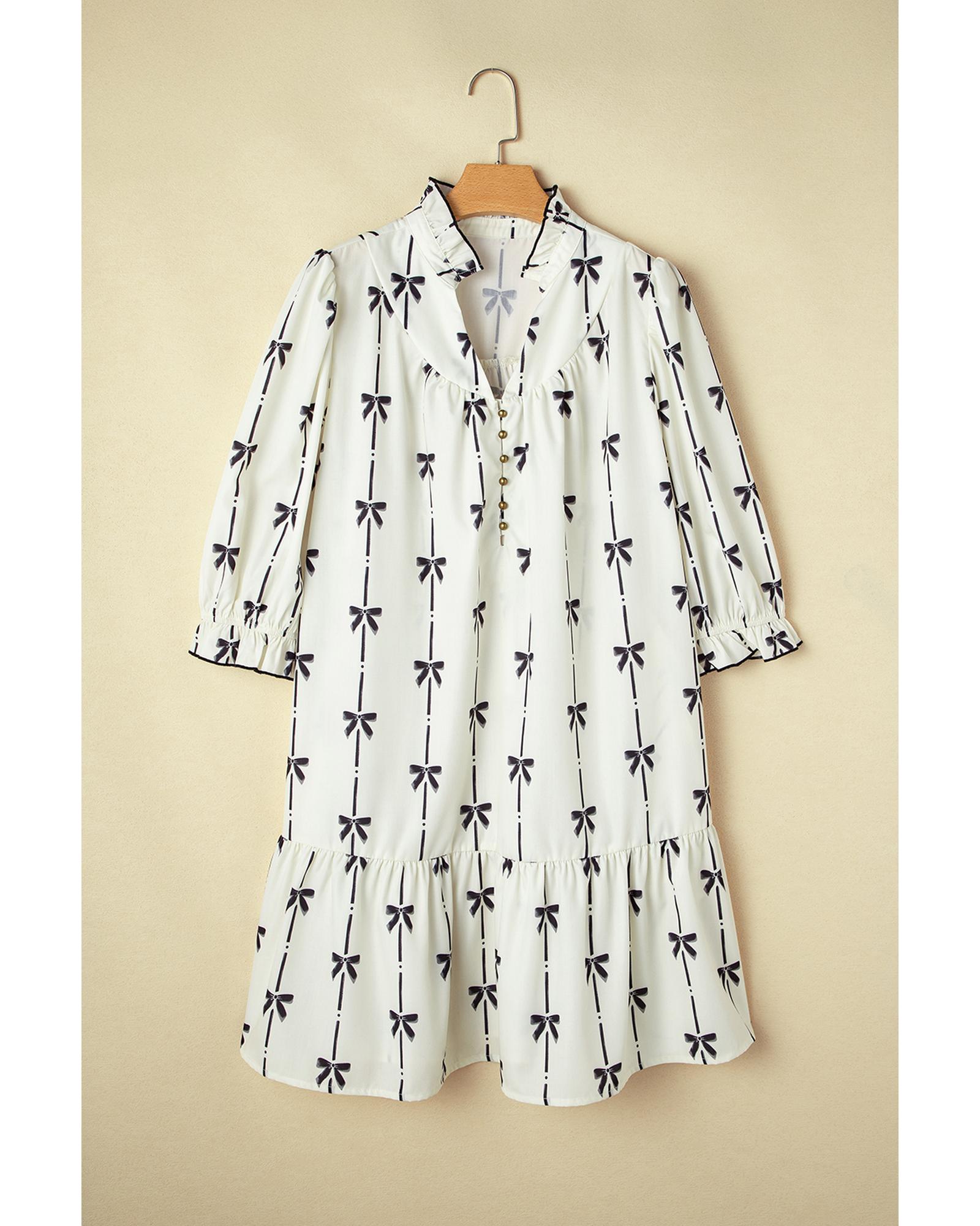Apricot Bow Printed Puff Sleeve Ruffled Plus Size Mini Dress – 1X