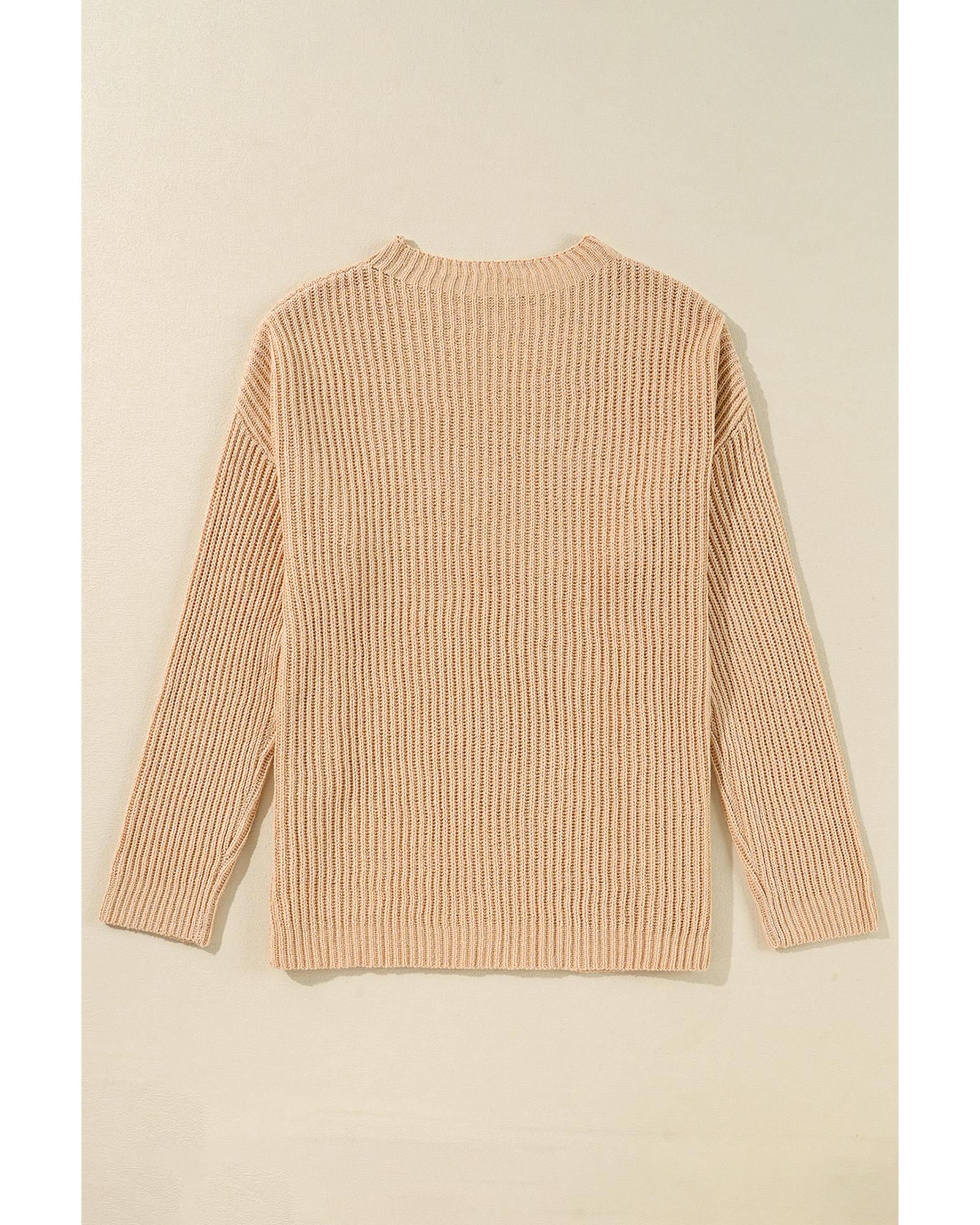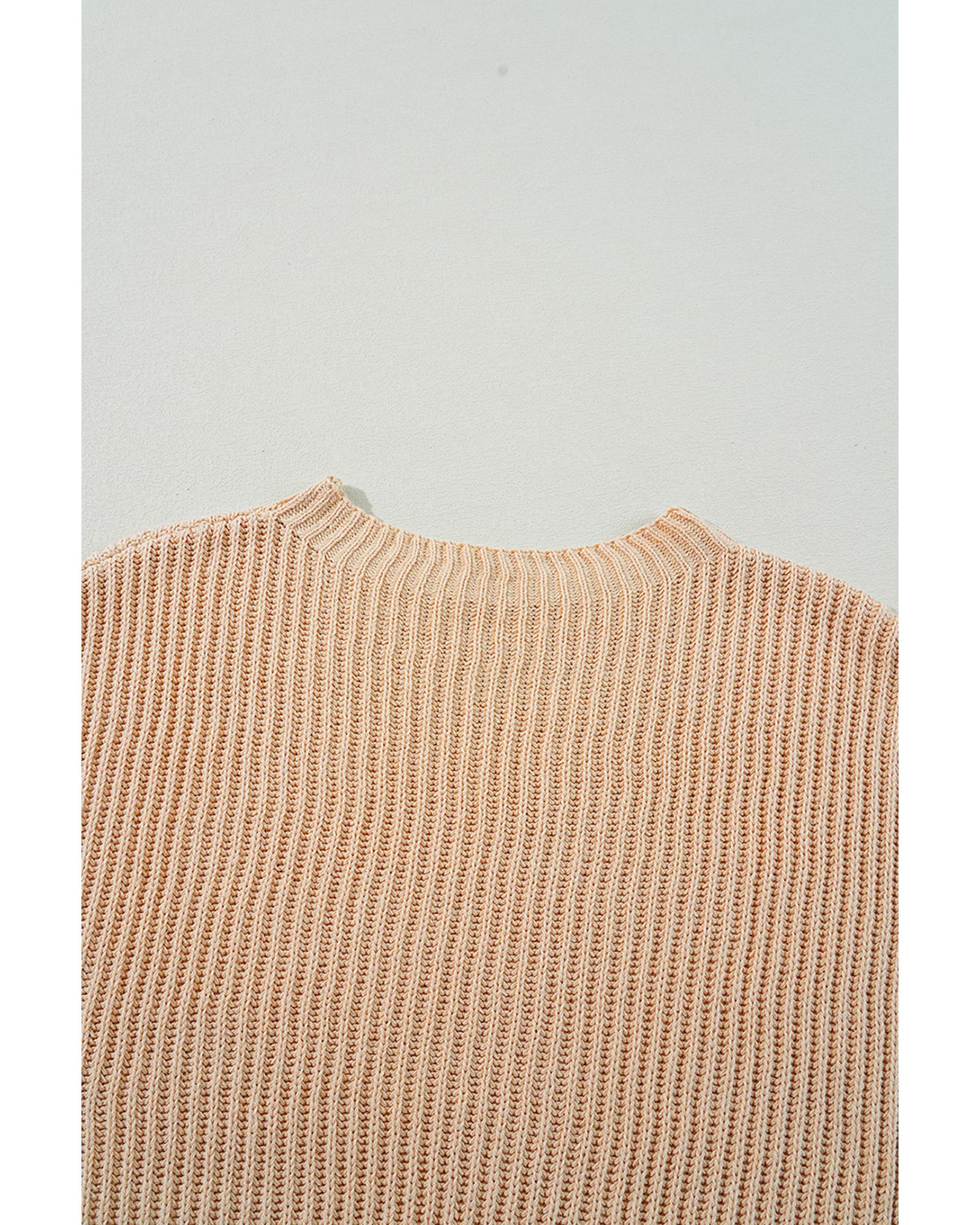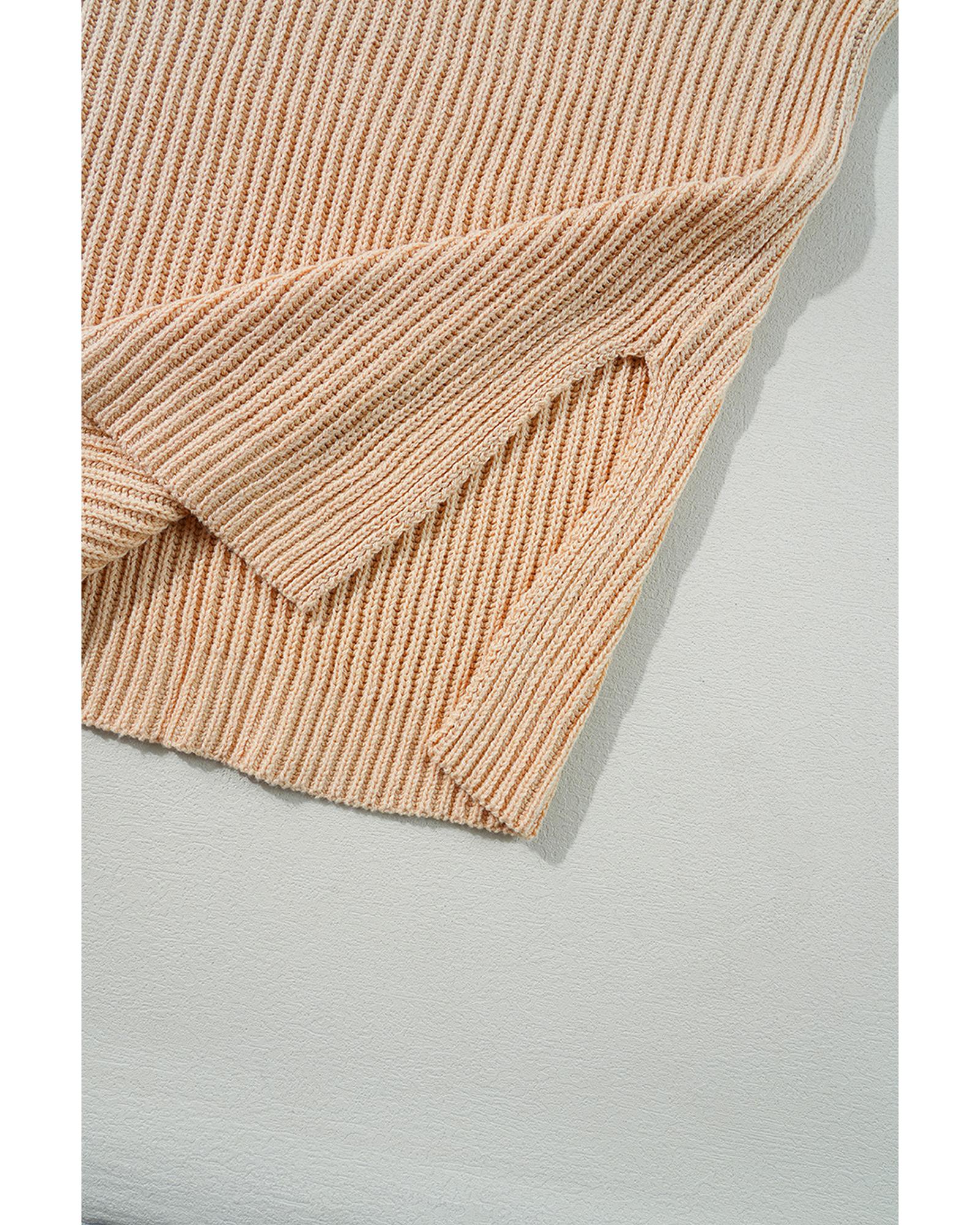 Apricot Cable Knit Drop Shoulder Side Slits Loose Sweater – L