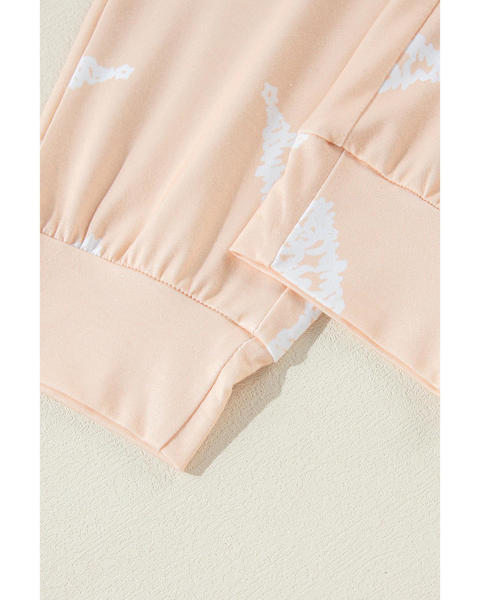 Apricot Christmas Tree Print Loose Fit Two Piece Pajama Set – L