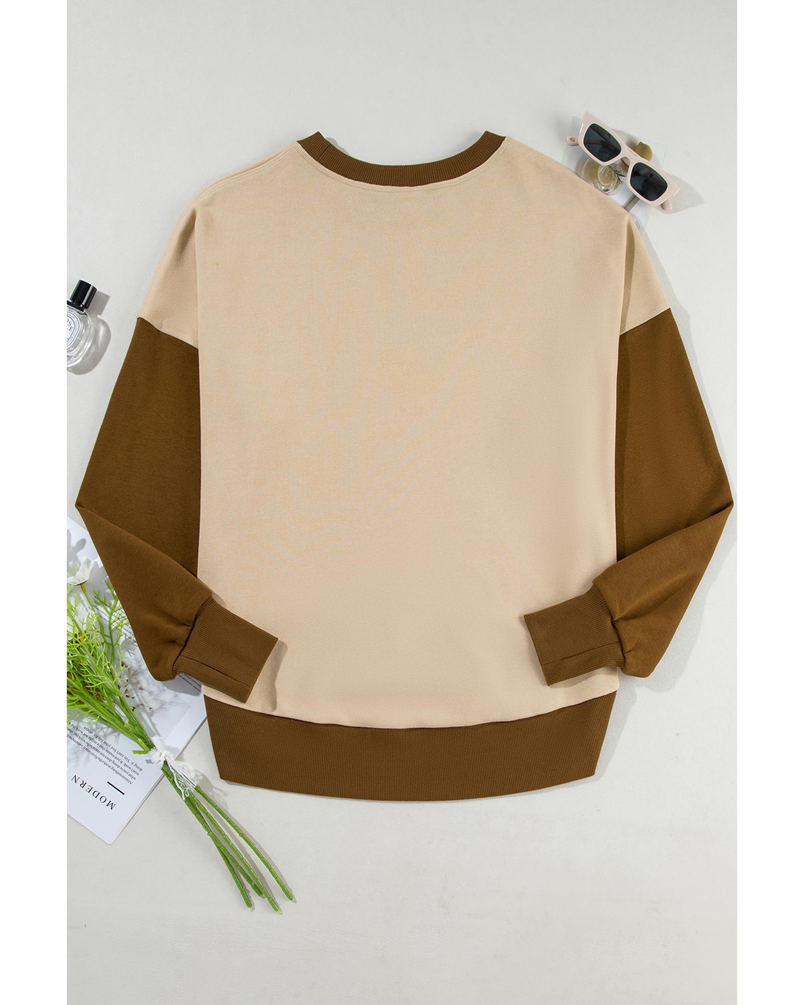Apricot Color Block Thumbhole Sleeve Drop Shoulder Sweatshirt – L