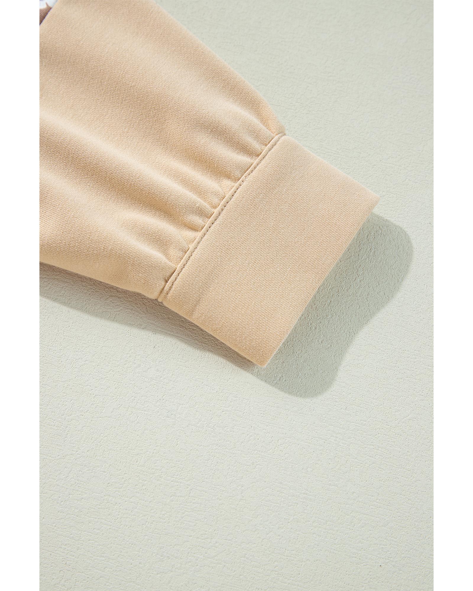 Apricot Floral Patchwork Star Pattern Drawstring Hoodie – L