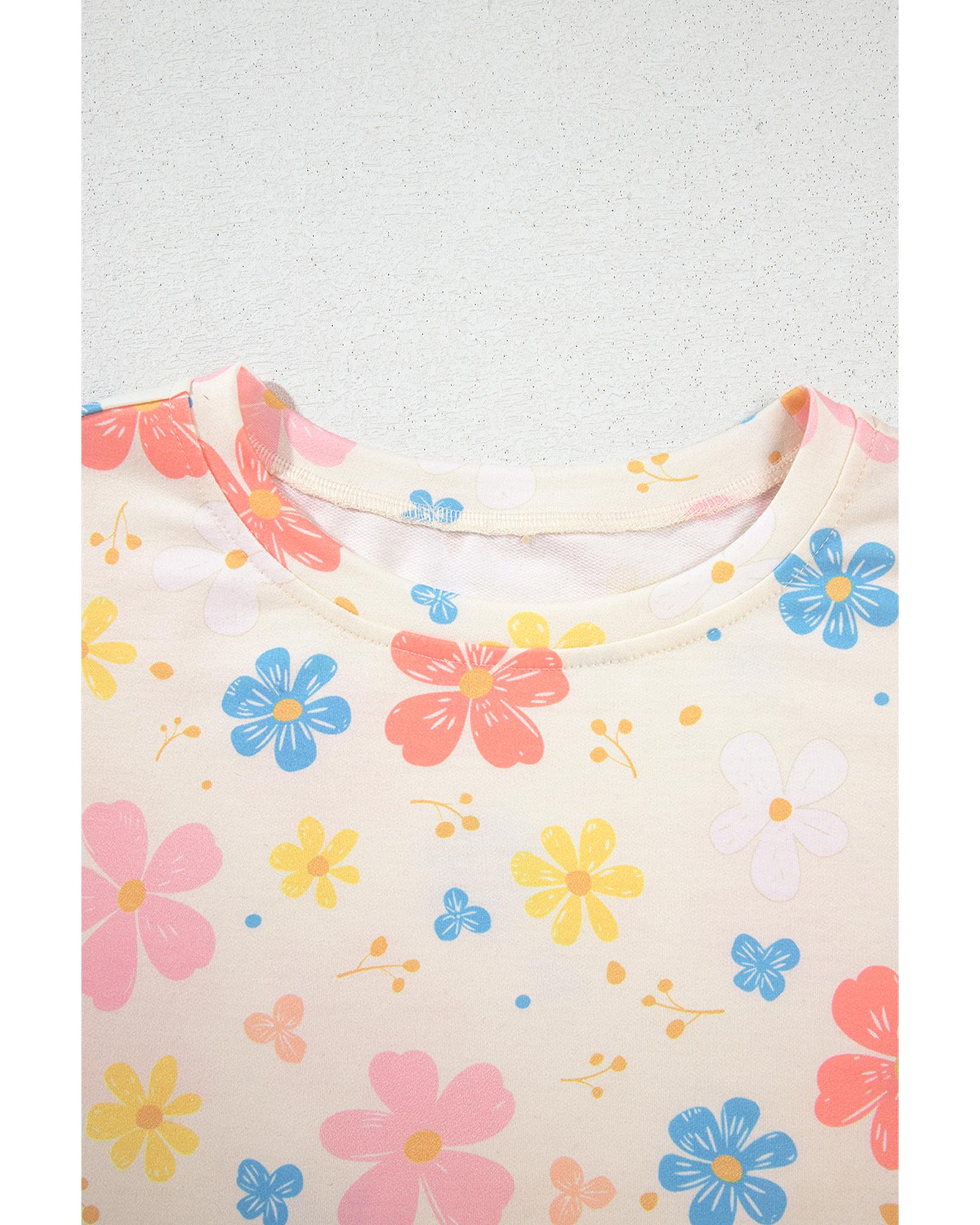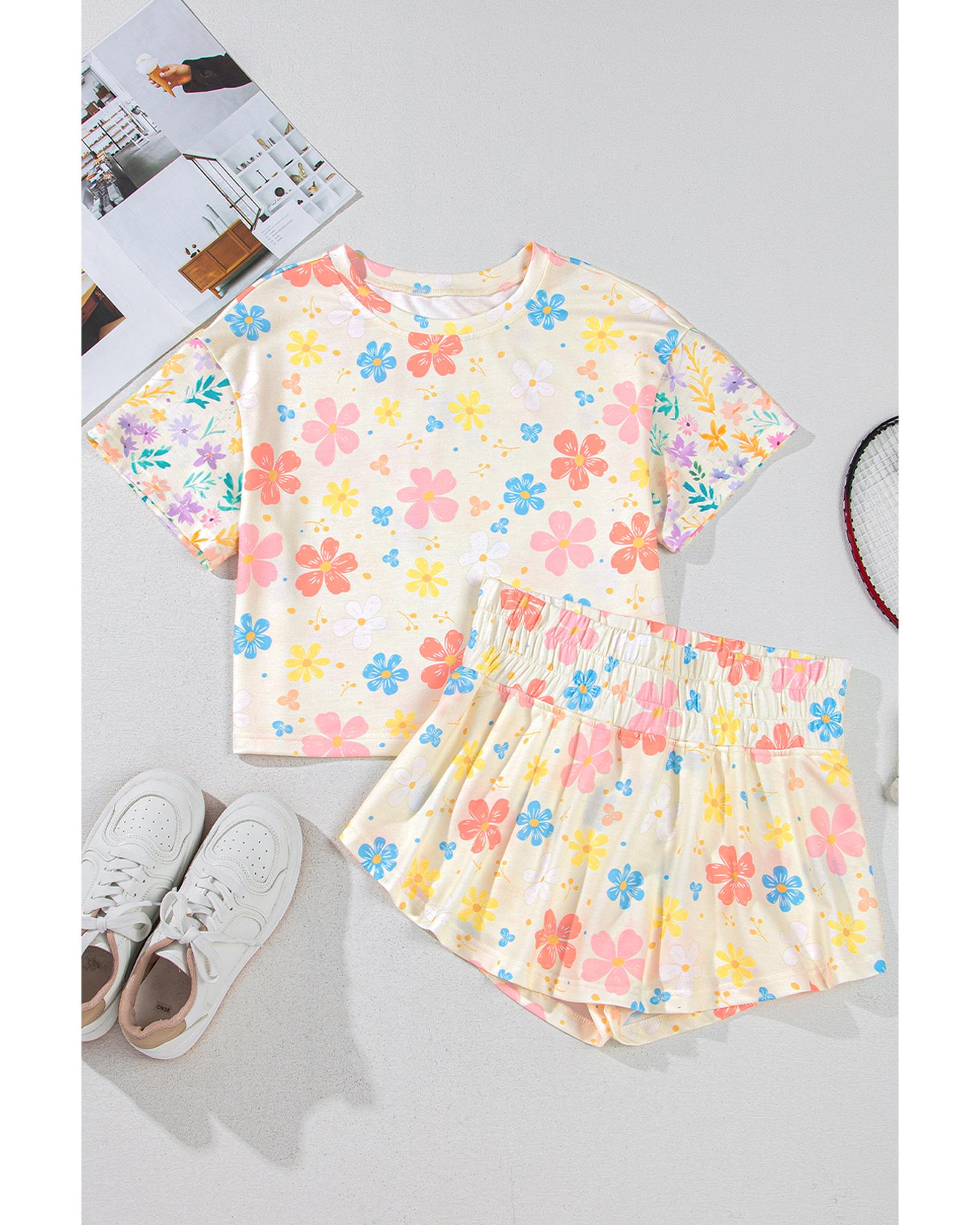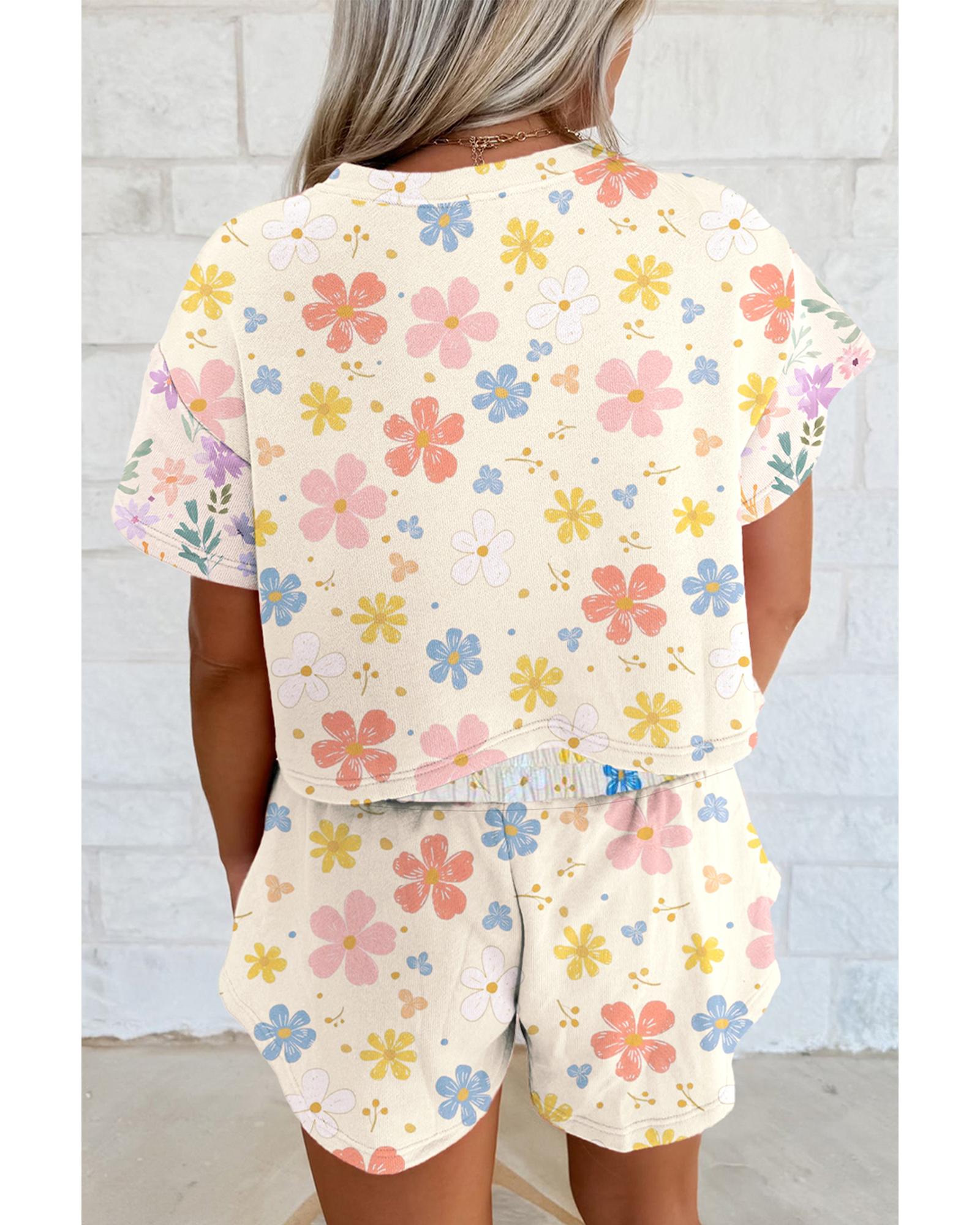Apricot Floral Print Crop Top Wide Leg Short Set – XL