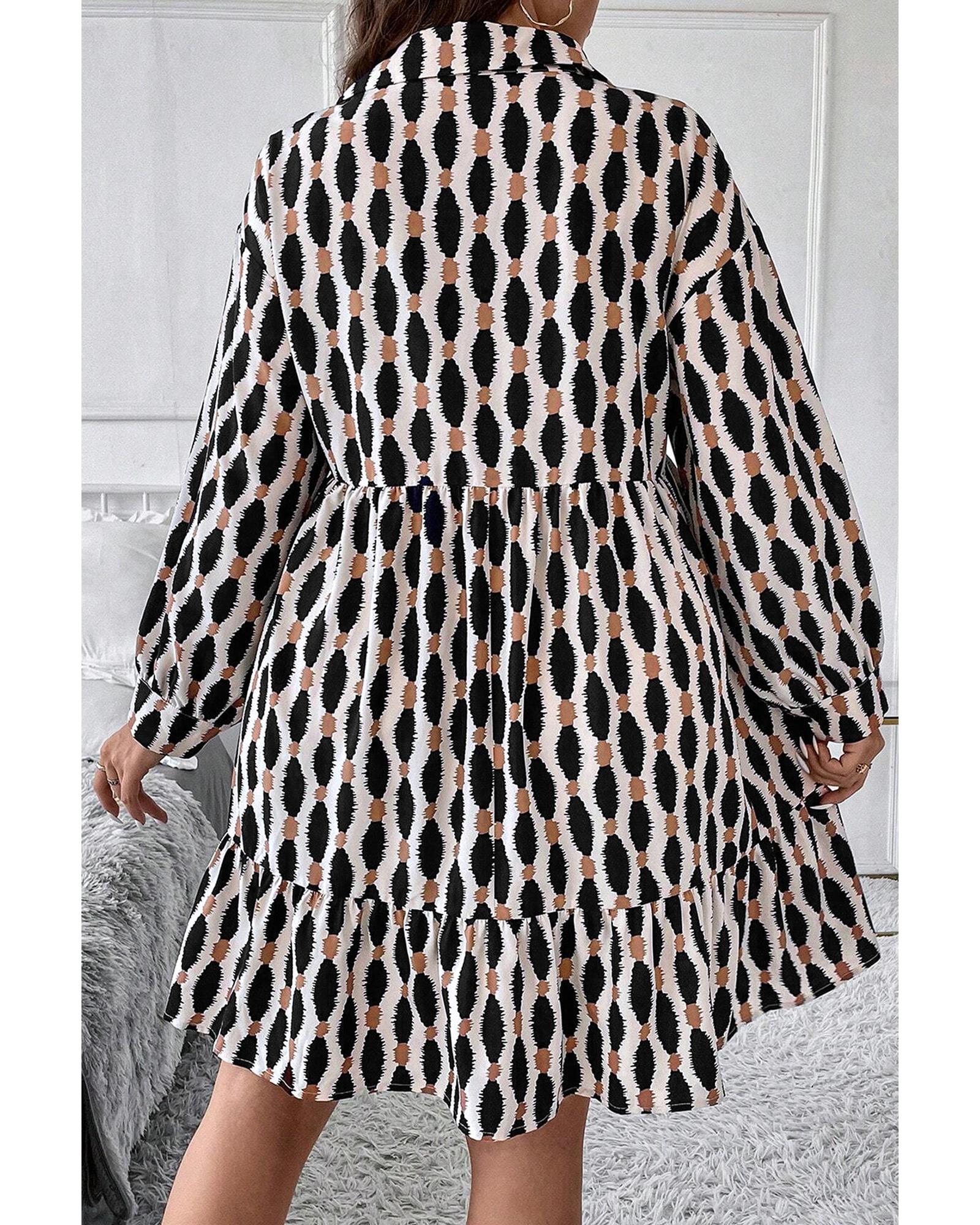Apricot Geometric Print Collared V Neck Plus Size Mini Dress – 3X