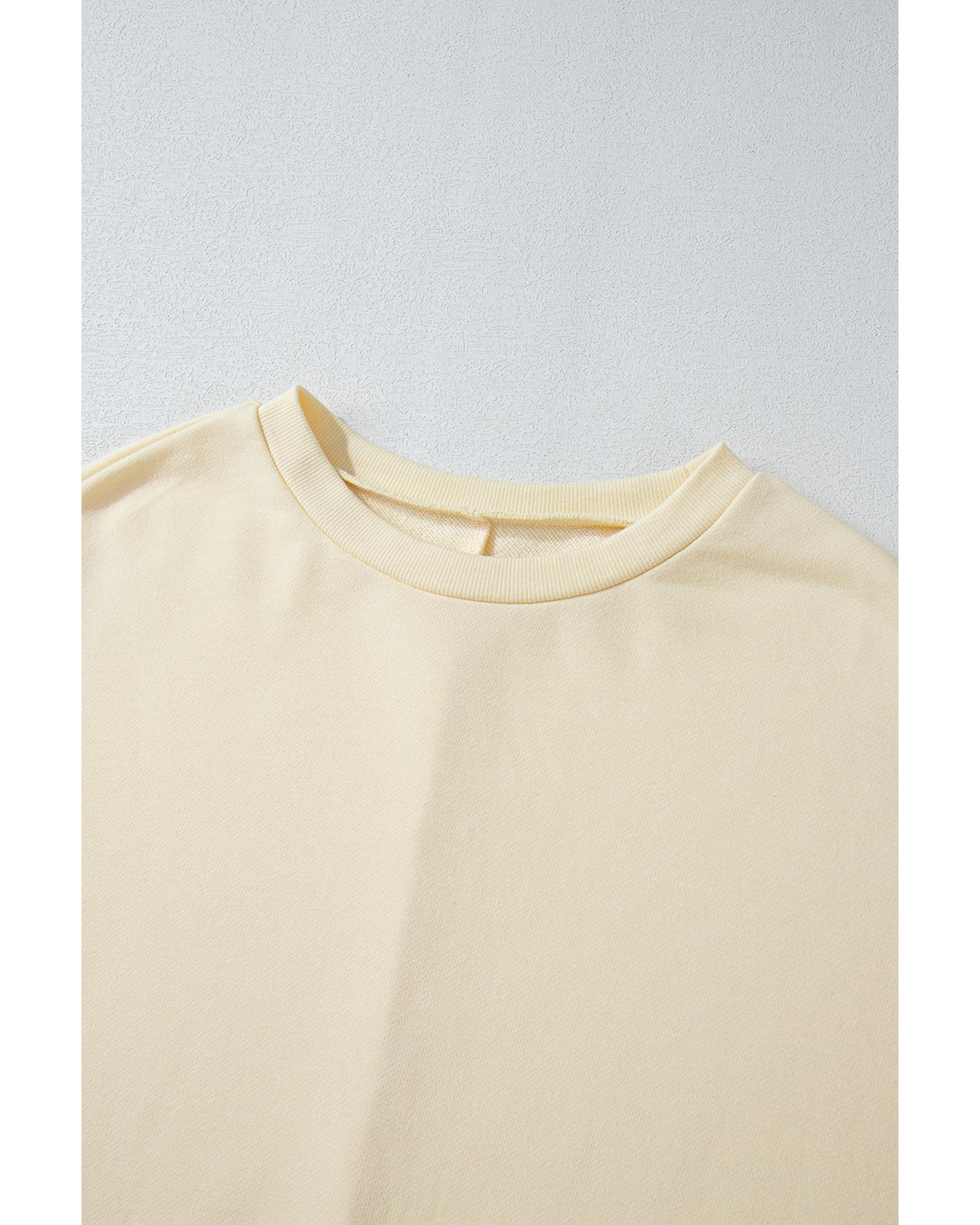 Light Pink Colorblock Striped Drop Shoulder Long Sleeve Top - M