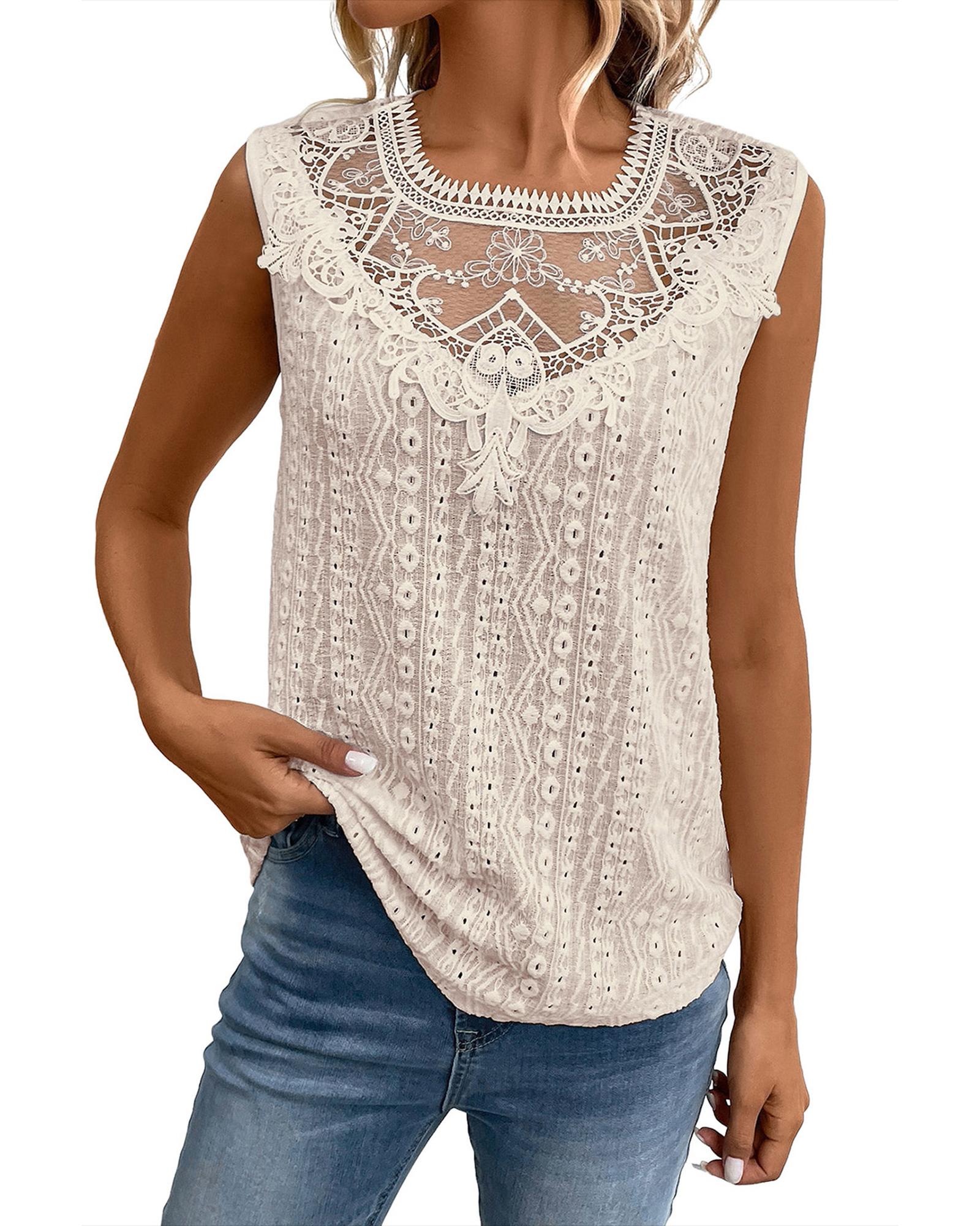 Apricot Guipure Lace Crochet Keyhole Back Tank Top – S