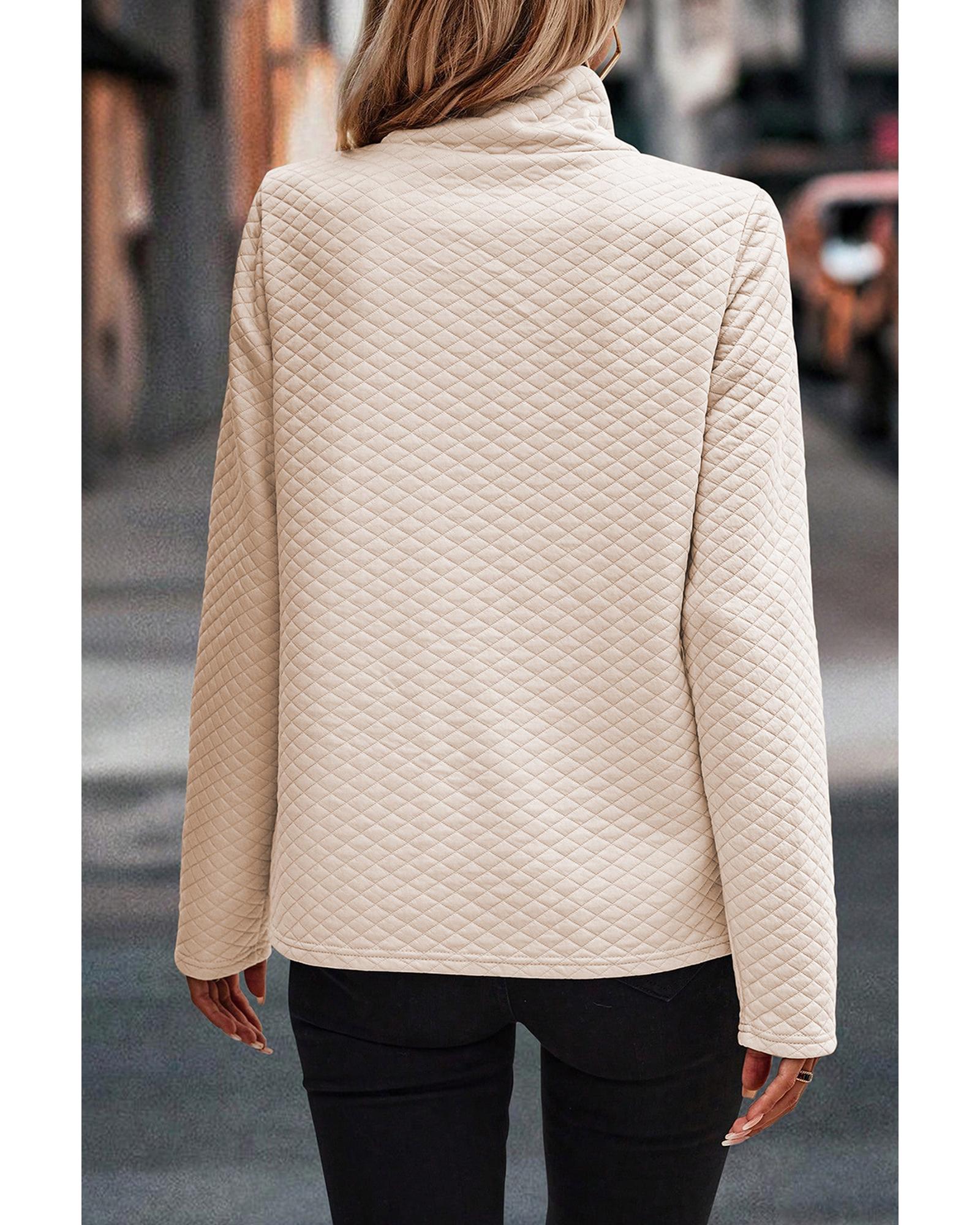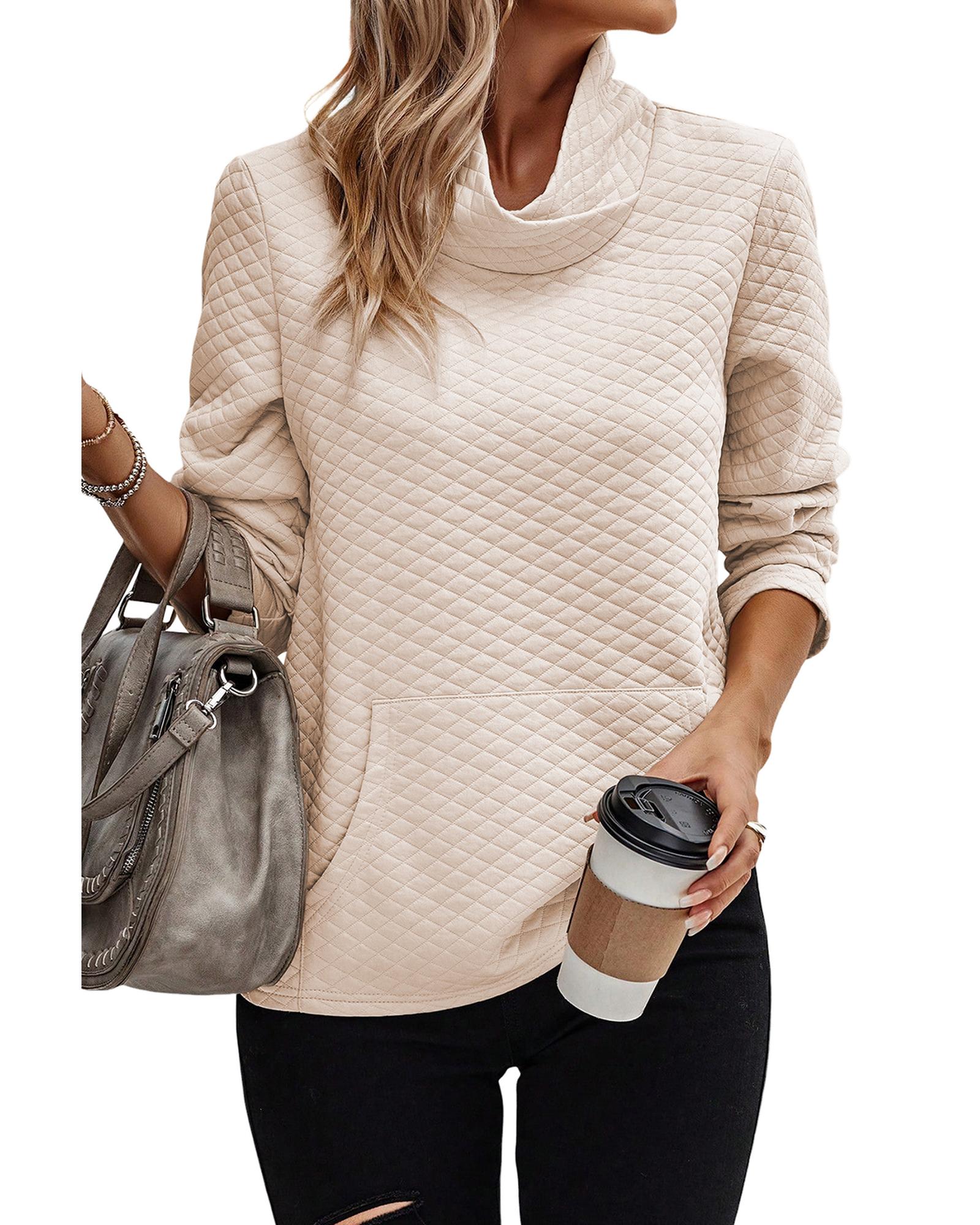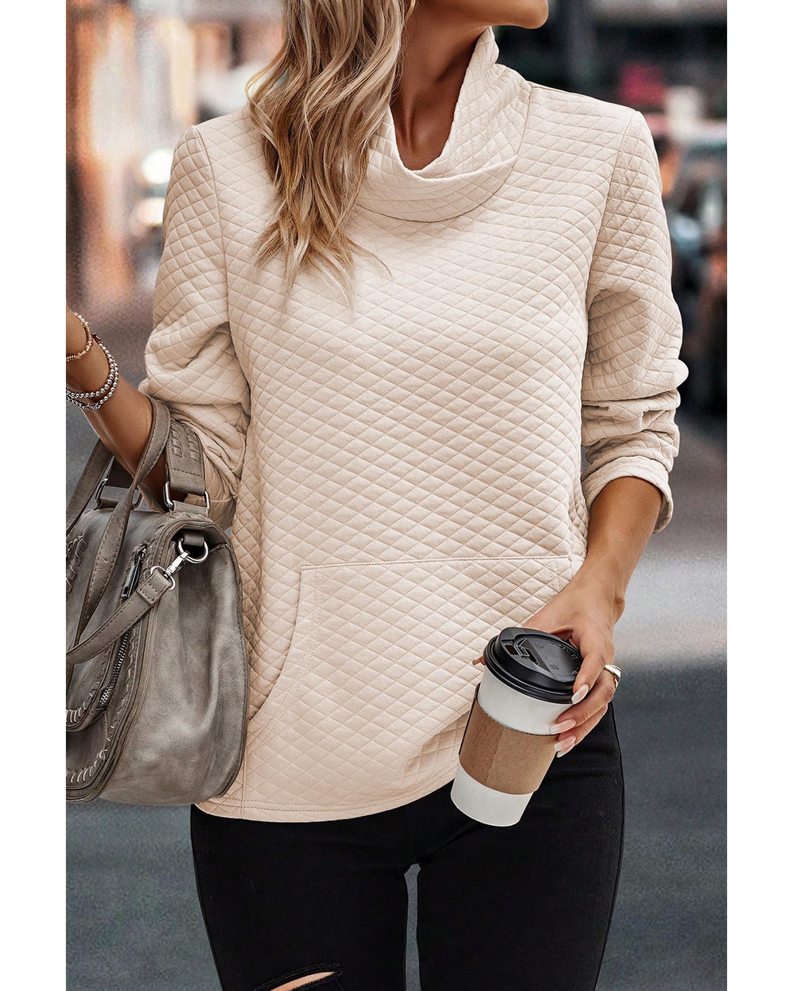 Apricot High Neck Kangaroo Pocket Quilted Sweatshirt – XL