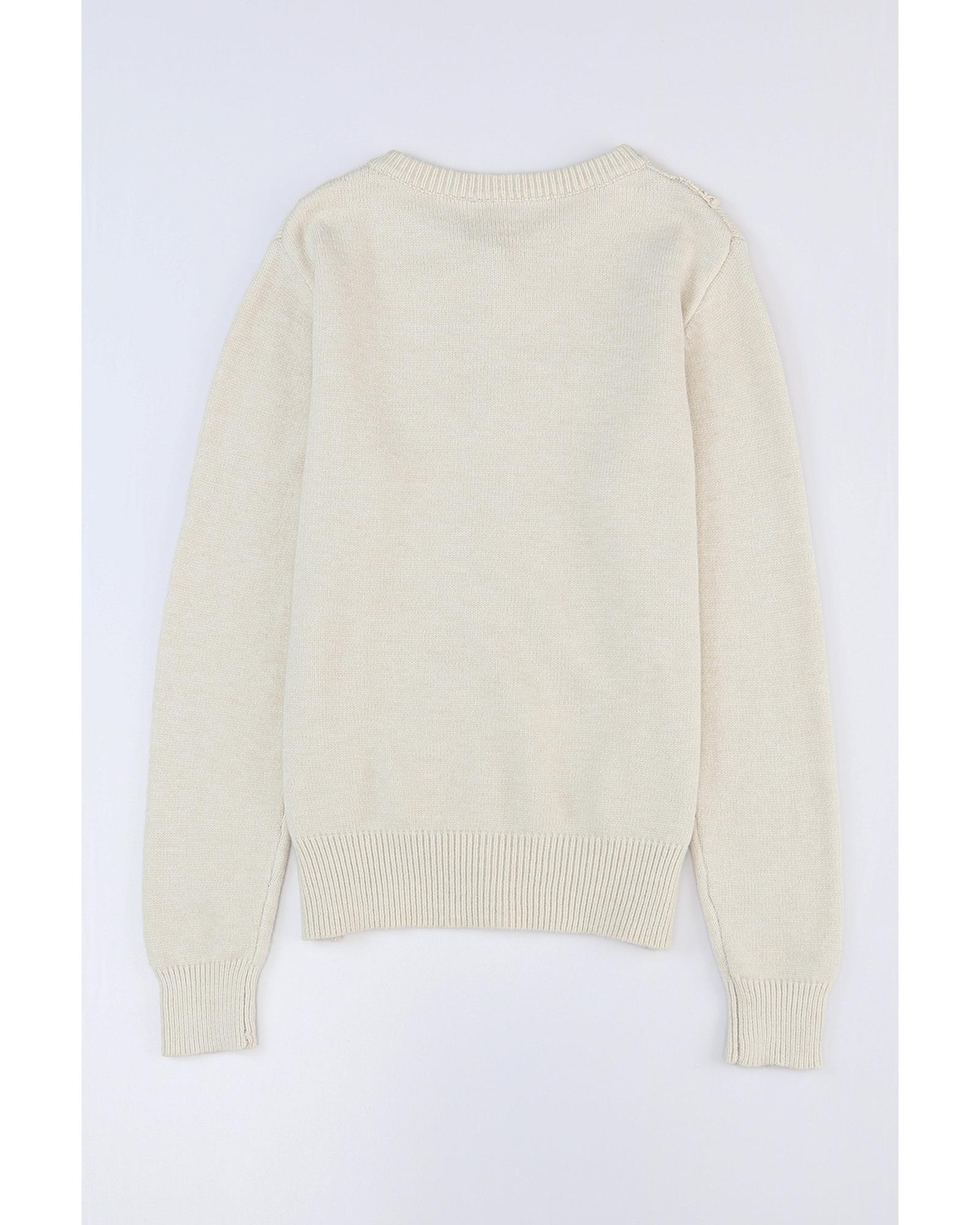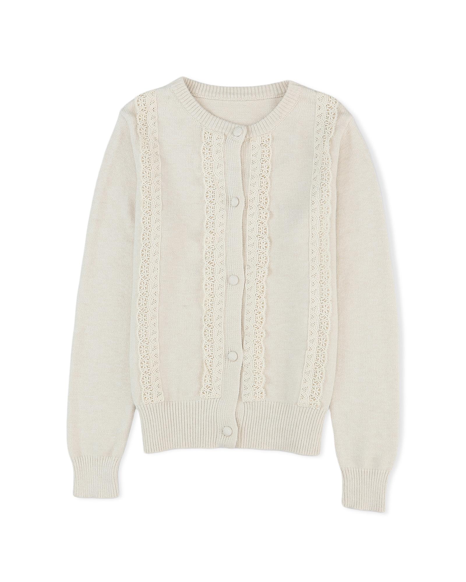 Apricot Lace Trim Ribbed Round Neck Button Up Cardigan – L