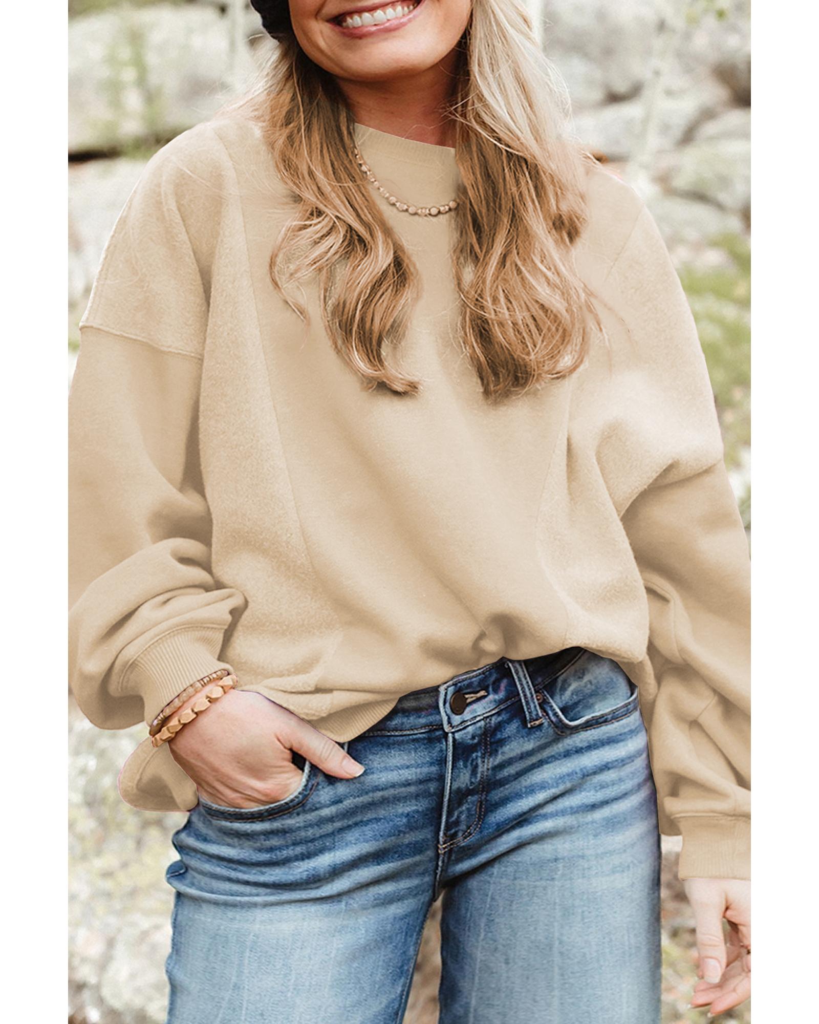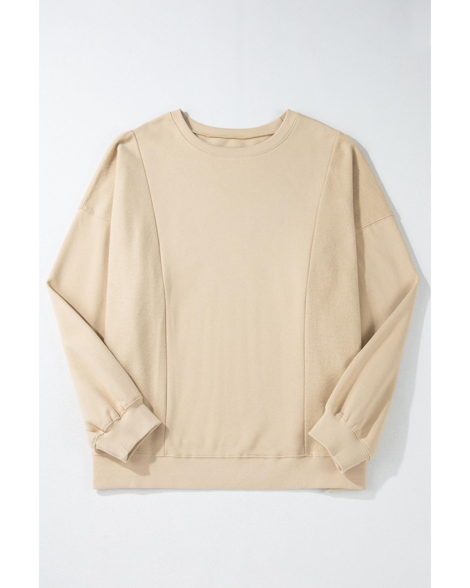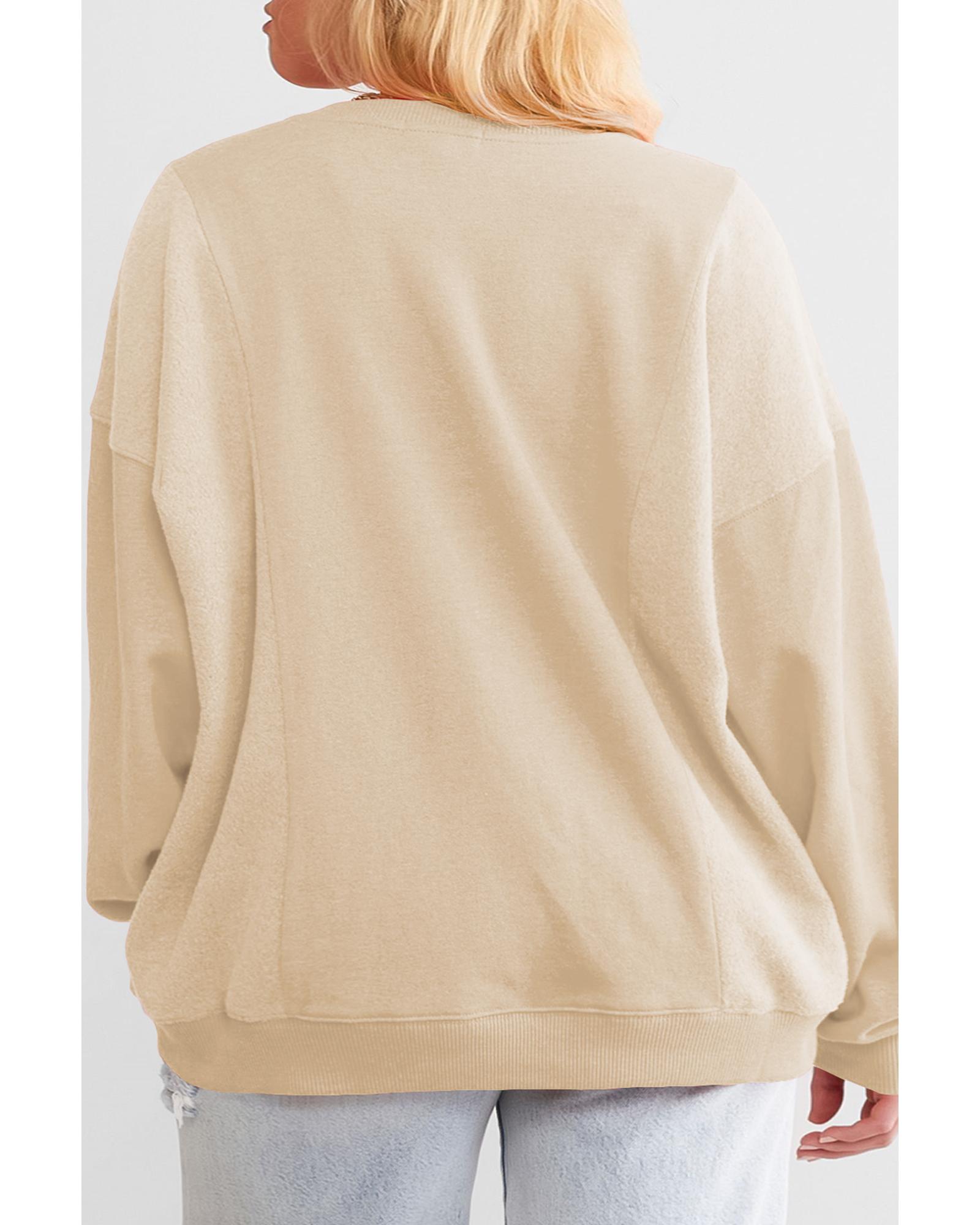 Apricot Loose Patchwork Crewneck Plus Size Sweatshirt – 4X