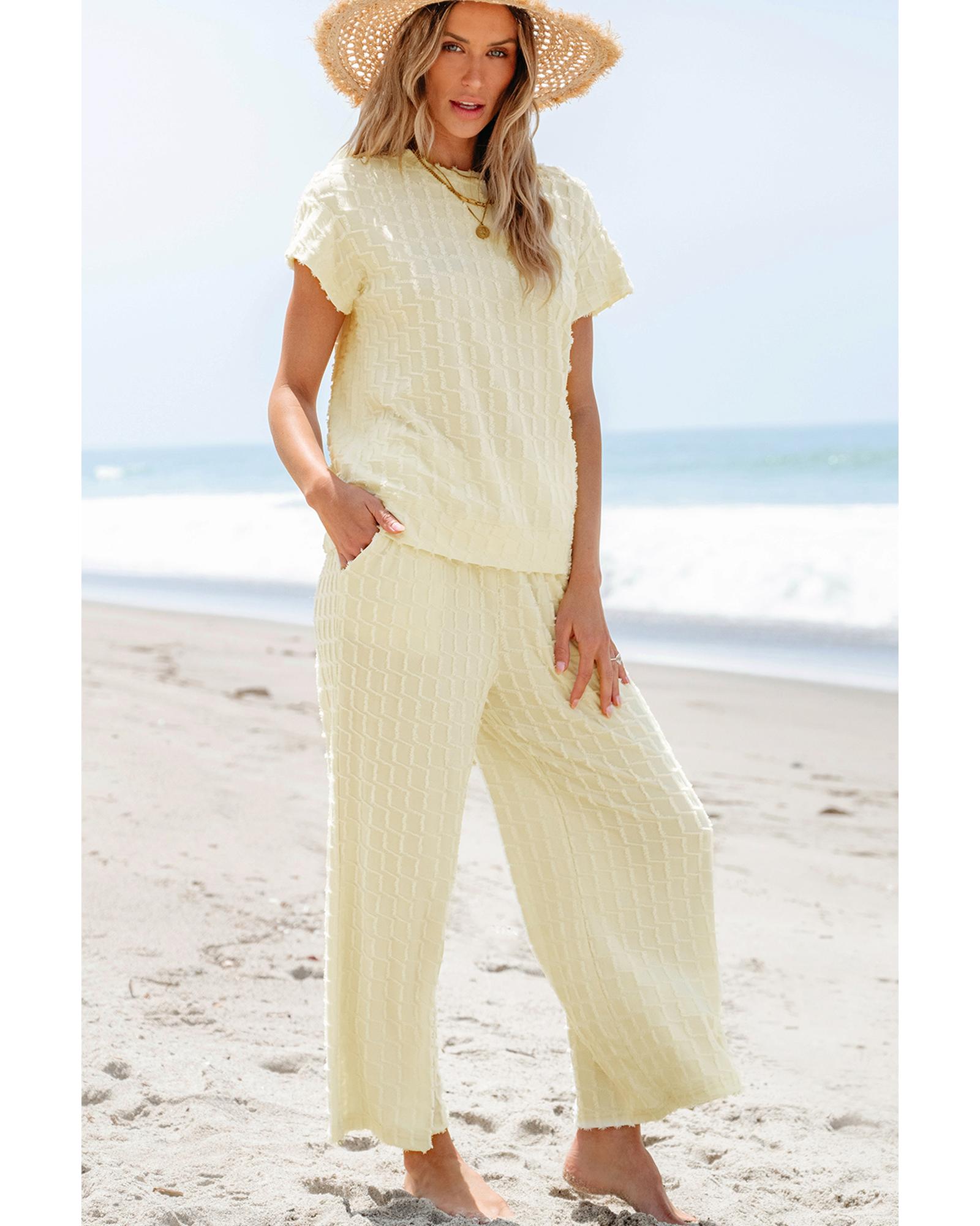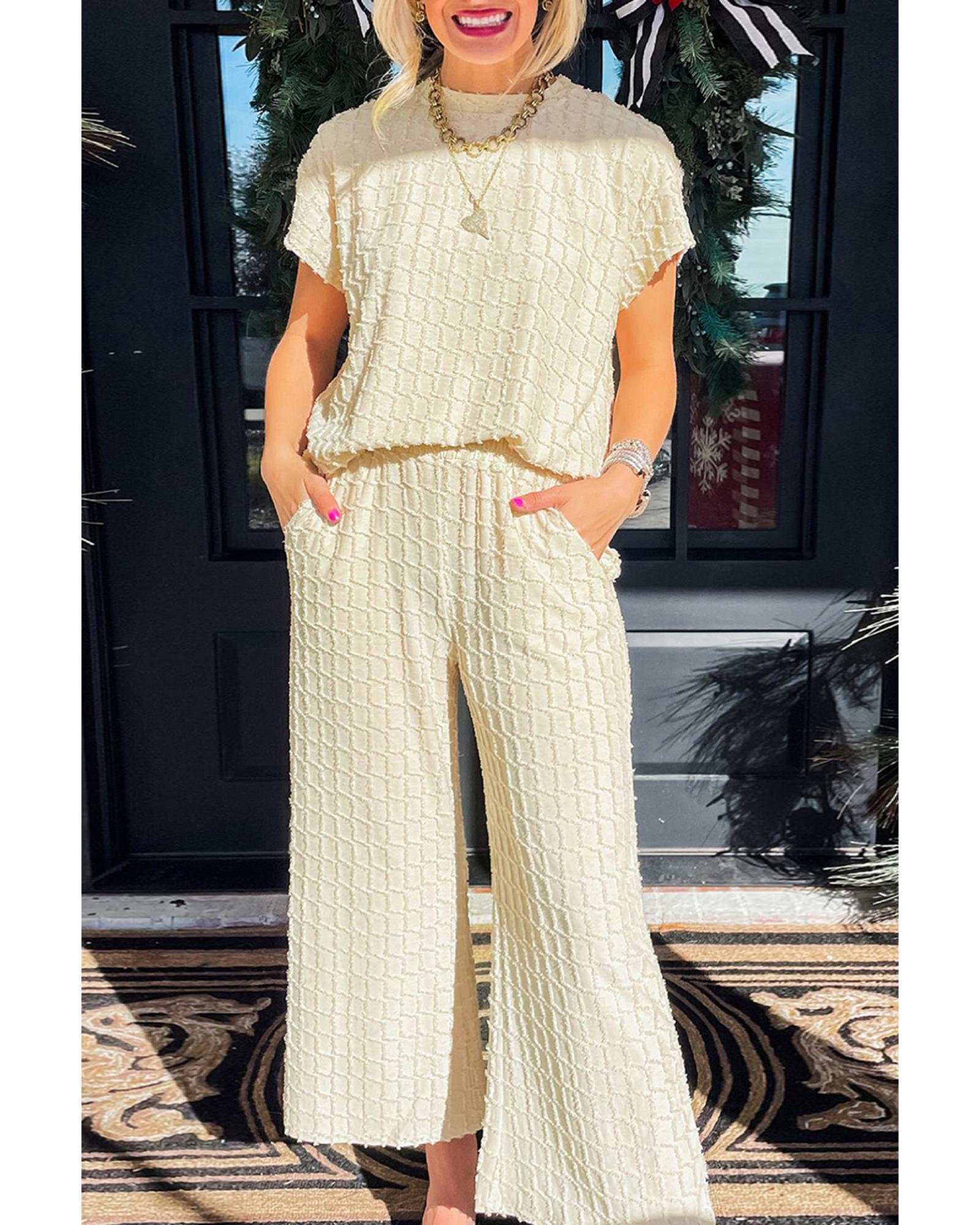 Apricot Metallic Lattice Textured Casual Two Piece Set – XL